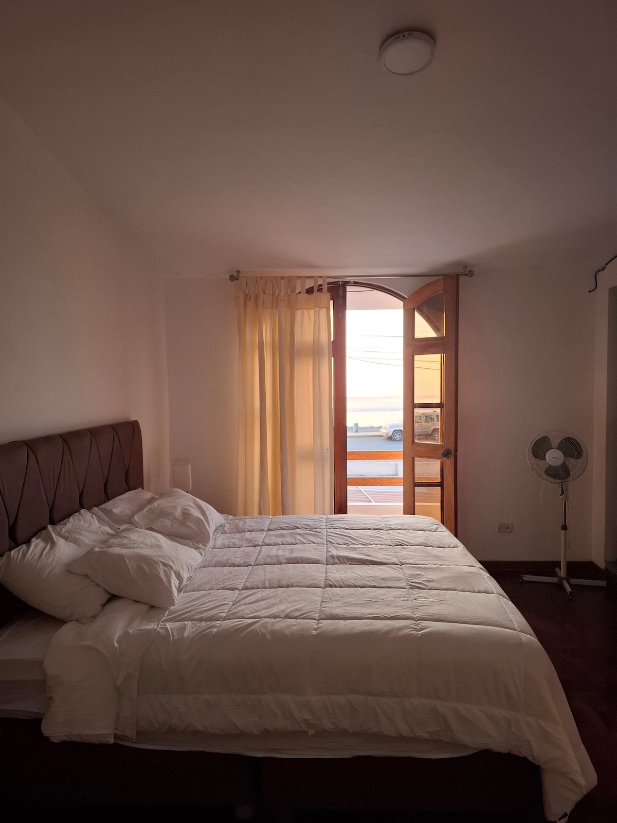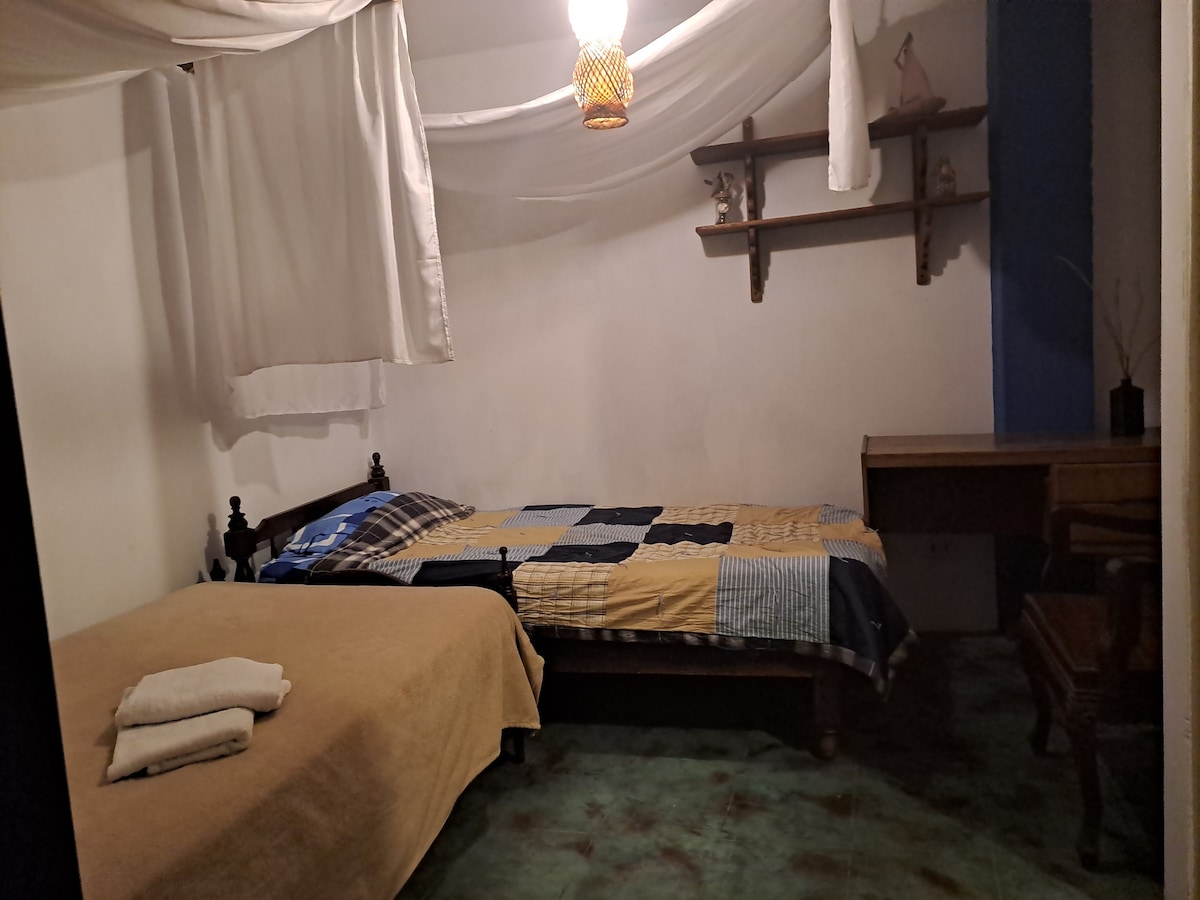PRIVADO. cordinamos check in cualquier pregunta con gusto la contestare en EL Corazón de Huanchaco. a 3 cuadras mejor playa y media cuadra placita principal, puerta calle, ESTACIONAMIENTO EN LA CALLE WIFI el 1erpiso: un Patiecito de entrada, salita , mesa de trabajo y comedor para dos, el kitchen equipado. 2do piso: dormitorio cama Matrimonial, Baño Aguacaliente. amamos a las mascotas, es un departamento para Personas positivas con buenas vibras!! . A veces hay ruido en la calle.