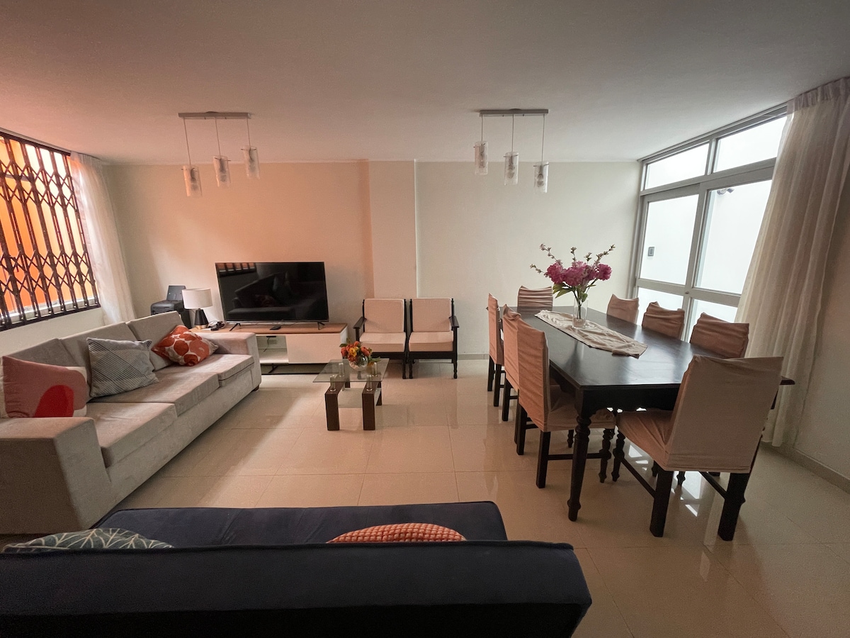 CAMA KING. Disfruta de la sencillez de este alojamiento tranquilo, con EXCELENTE UBICACIÓN, en La Merced, con ubicación céntrica, segura y residencial. Con restaurantes y supermercados a una cuadra. Con TERRAZA PROPIA incluida, cocina completa, y cine en el cuarto. Lava- seca incluida. Todos los servicios.