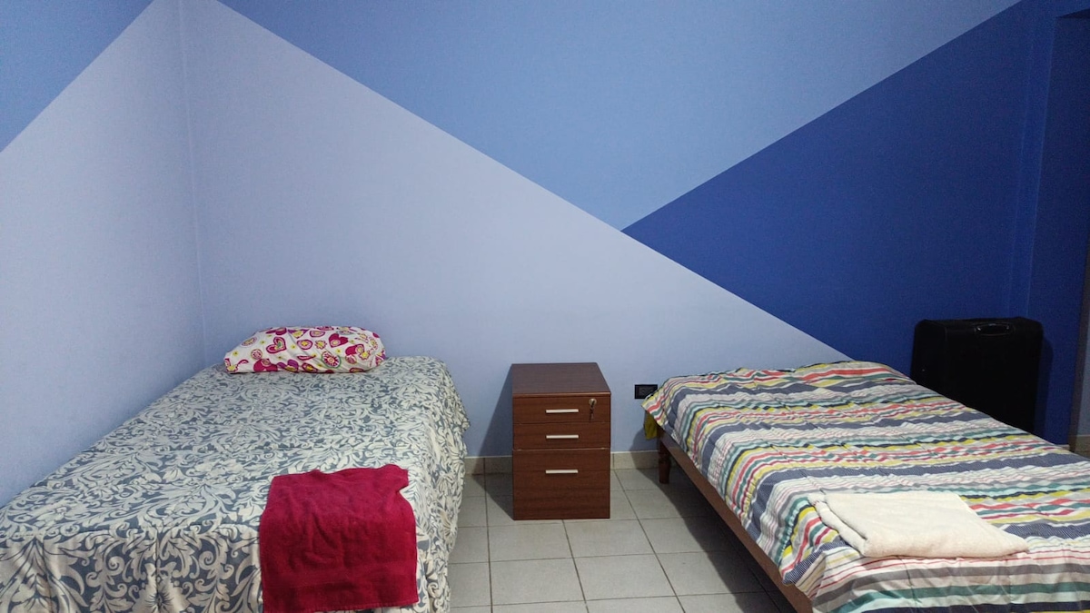 This mini duplex for two people is situated at 10 minutes from the heart of Pucallpa city. Featuring a kitchenette, a living room, a bathroom, and a bedroom with a double size bed in its upper level, the property is a short drive from downtown and many supermarkets, shops, and the airport. WiFi, AC unit, 1 pedestal fan and limited laundry (in the common-areas) included.