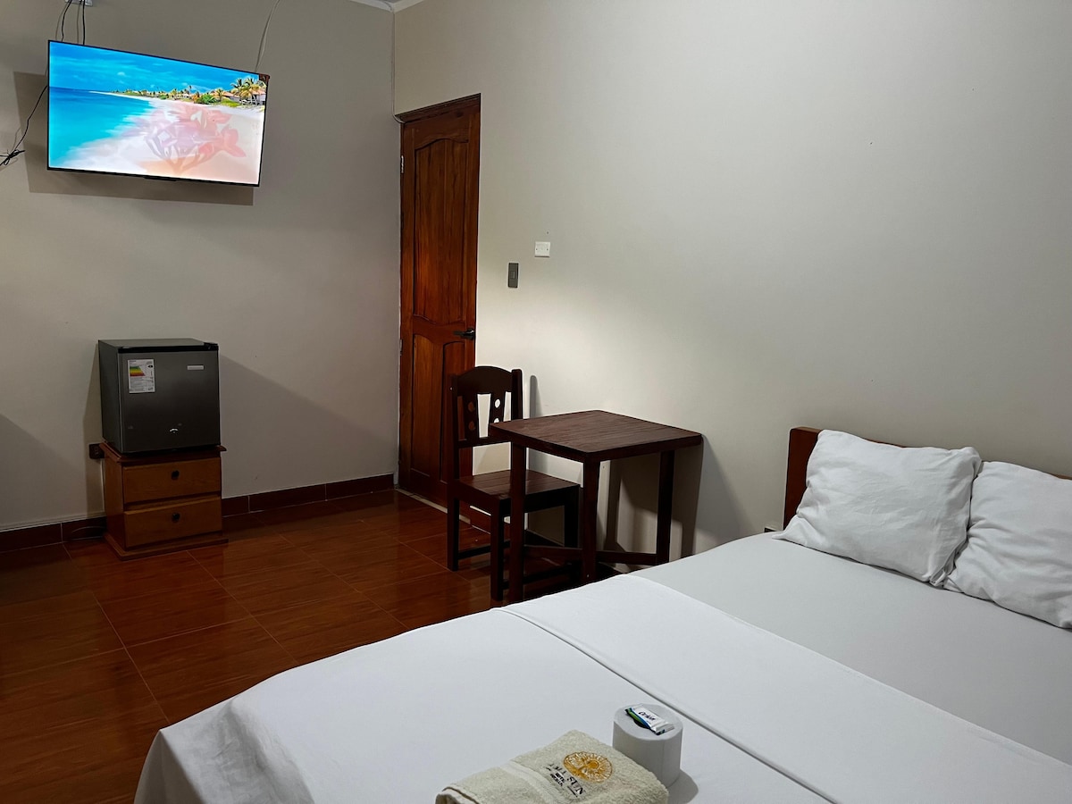 Nos encontramos en el centro de la ciudad, cerca a los bancos, farmacias, tiendas comerciales y restaurantes turísticos. La habitación es mediana, con una cama muy confortable y varias almohadas para mayor comodidad. También tiene una mesa, silla, armario y TV. El baño es propio equipado con toallas y elementos de limpieza básicos. En Natural Green todos nuestros huéspedes son bienvenidos, nos encanta saber que todos se sientan como en casa, lejos de casa.