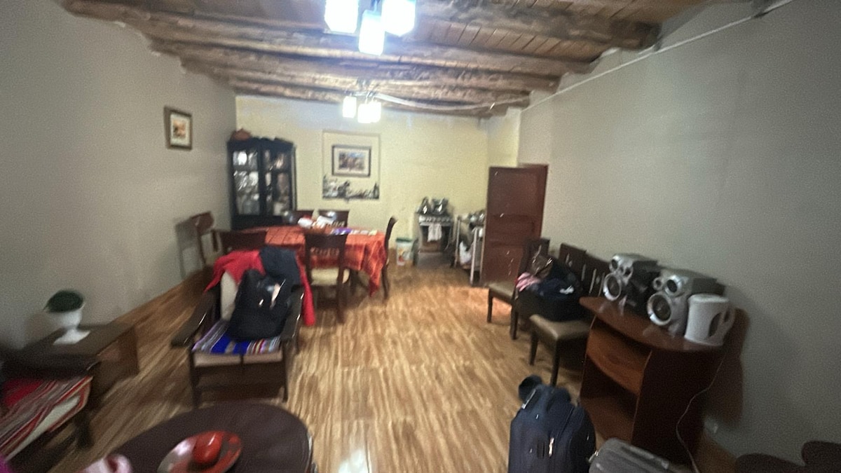 La casa esta ubicada en la zona urbana de la ciudad, a 7 minutos del aeropuerto, y a 5 minutos centro de la ciudad. La casa es privada, espaciosa, con una linda terraza, un patio grande que también puede usarse como cochera, cocina equipada, sala con TV 55" comedor, dos habitaciones, un baño completo y otro de visita, lavanderia equipada, buena iluminación natural en todas las áreas. Tiene todos los servicios básicos, además, AC, Wifi, Netflix, DIRECTV, YouTube. Cerca a mercados y tiendas.