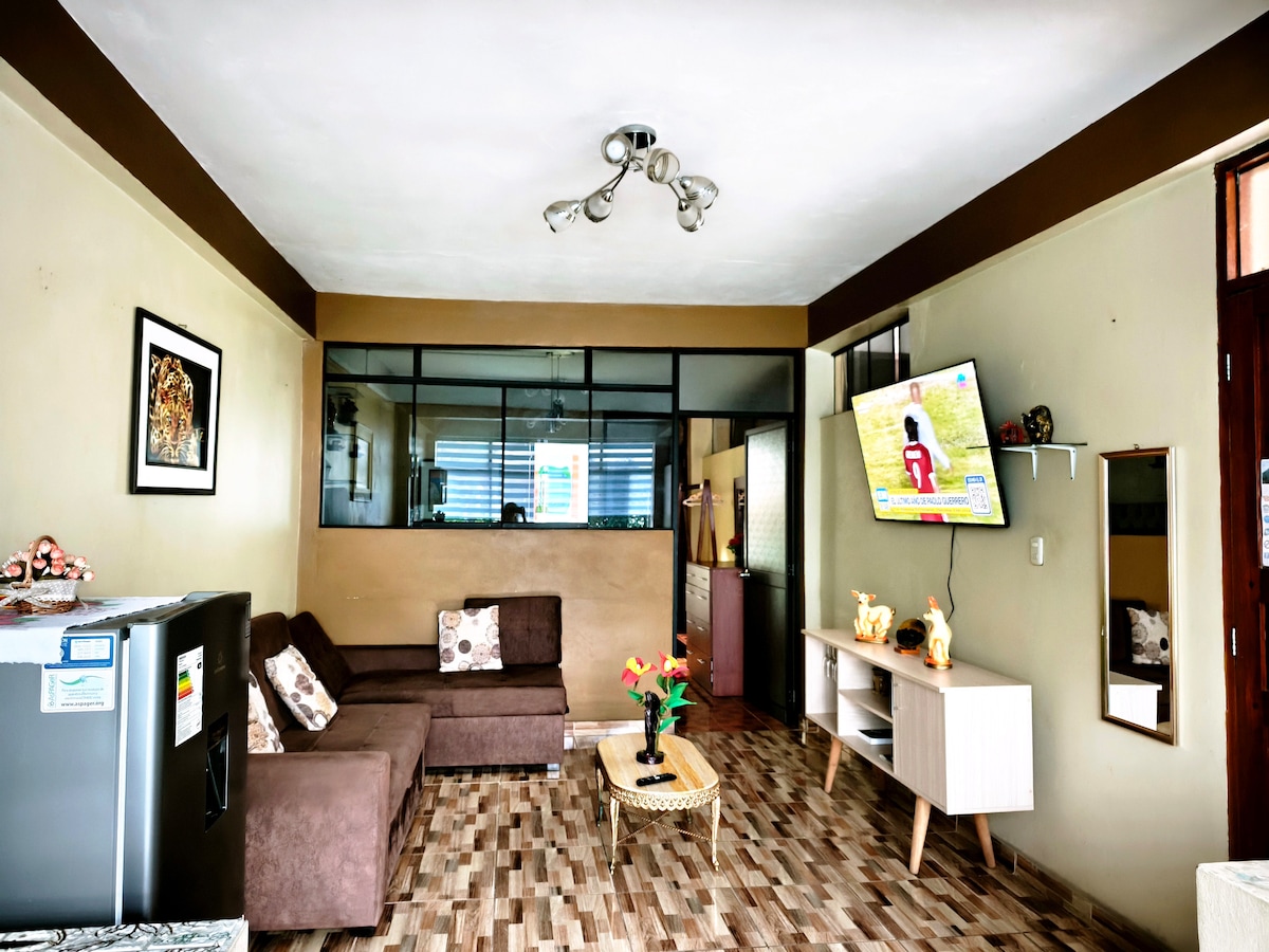 Acogedor, espacioso y renovado alojamiento, ideal para parejas o familias pequeñas, cuenta con todos los servicios para que tu estadía sea muy confortable,wifi de alta velocidad para que puedas trabajar, esta ubicado cerca a la plaza de armas de la ciudad, agencia de viajes y de turismo, así como bancos y lugares de comida típica y de esparcimiento para niños. Puedes dejar tu vehiculo fuera de la casa sin costo. Te brindamos información turística.