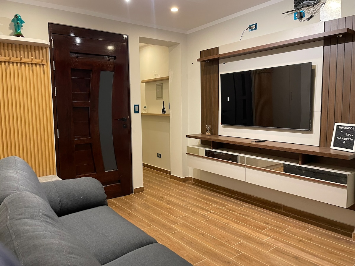 El departamento es de uso exclusivo para los huéspedes, se encuentra en el primer piso, la habitación tiene baño propio, podrás disfrutar de la calidez de este alojamiento muy tranquilo y céntrico a solo 3 cuadras de la plaza de armas. Puedes acceder a la cocina, sala, comedor y baño. Dispone de agua caliente en las ducha y cocina. Ideal para largas estancias.