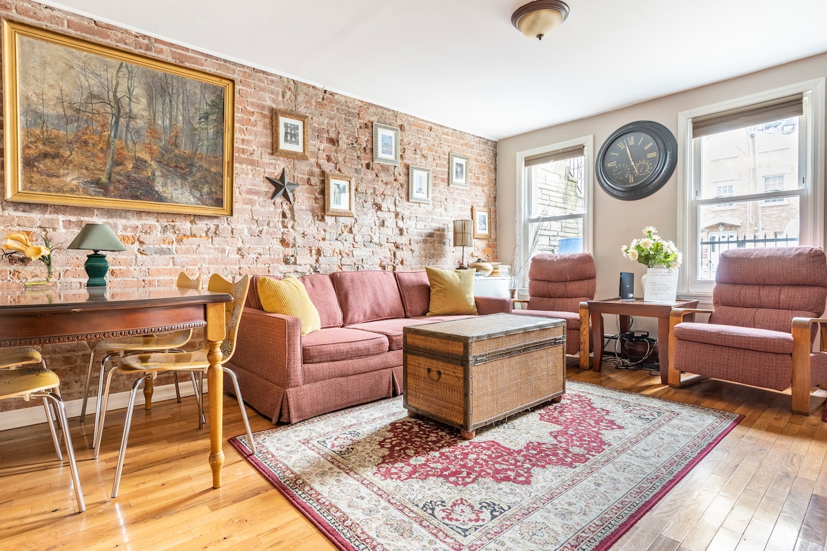 A unique two-floor townhouse to make yourself at home and get cozy in during a scenic getaway to Brooklyn! Original charms invite you into our 19th century rowhouse in the old port neighborhood of Red Hook, which now draws visitors from afar and within NYC to its quality dining, drinking, and recreation along the New York Harbor. We invite you to read something from the bookshelves; attend correspondence in the library nook; listen to the record player; relax in the clawfoot tub!