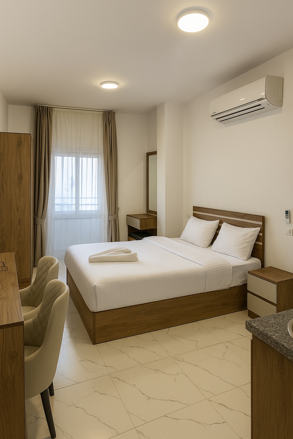 Relax in this modern and stylish apartment located inside La Bella Resort, Hurghada. The apartment offers a comfortable king-size bed, elegant living area, fully equipped kitchen, and a private balcony overlooking the pool. Perfect for couples or small families looking for a peaceful resort stay close to beaches, restaurants, and attractions. Enjoy comfort, privacy, and a welcoming atmosphere designed to make you feel at home.