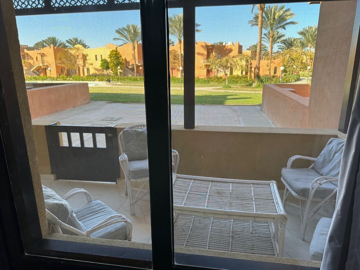 Take a break and unwind at this peaceful oasis. Studio with a Pool view. Studio offers: 1. Queen Bed. 2. Sofa Bed. 3. Smart Tv. 4. Kitchen. 5.dining table. 6.Bathroom. 7.Wifi. 8.Washing Machine. important remark: An official marriage certificate is required for Egyptians. ( No Orfi allowed )
