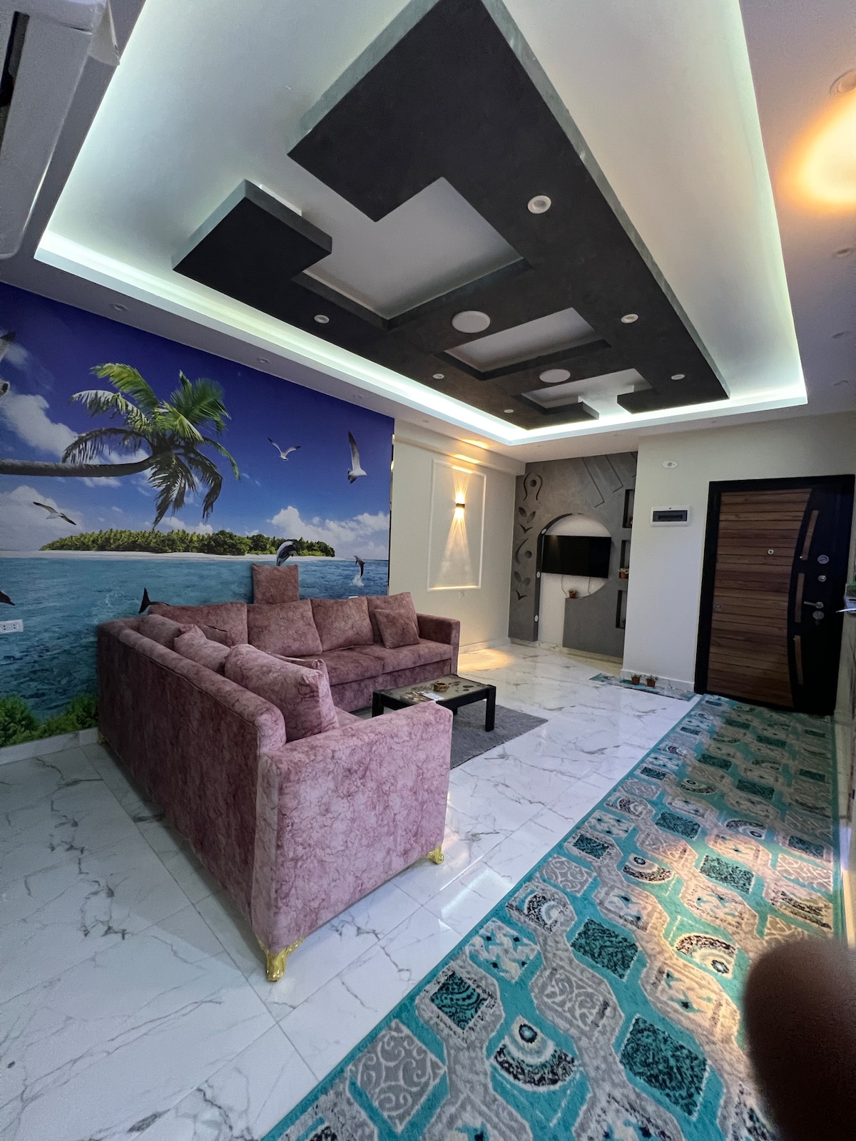 Enjoy with the whole family in this elegant residence, which consists of two bedrooms and a reception with a wonderful view of the sea and a swimming pool, where you can see the sea sleeping on the very comfortable bed or the sofa in the reception, calm with the beauty of the view is an important thing that makes you enjoy your time, and you can also relax on the balcony of the apartment where healthy sunlight is emitted from sunrise to sunset, and you can also relax on the pool on the ground fl