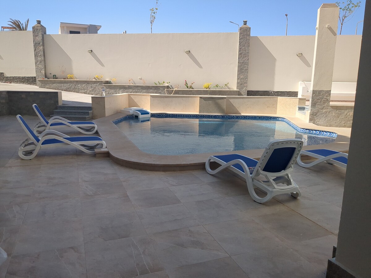 Experience pure joy and relaxation at this elegant and spacious villa in the tranquil neighborhood of Sahl Hashish , accommodating 6 guests, 5-mins drive from the city's largest shopping , Senzo Mall. Egypt's stunning beaches, Sahl Hasheesh is a mere 7 minutes, a fully equipped kitchen with modern appliances, perfect for preparing meals. a beautiful swimming pool, a BBQ area with a charming canopy , and a spacious terrace 5 mins away Neverland Resort, one of the largest theme Aqua park resorts