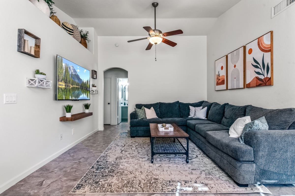Private and stylish casita in gated community in North Peoria. Easy access (5-15mins) to major highways Loop 101, Loop 303, I-17. Only 10 mins from Lake Pleasant, 15 mins from Spring Training/Peoria Sports Complex (Home of the Padres and Mariners), 20 mins to State Farm Stadium and Westgate Entertainment District (Glendale Arena and Top Golf). Nearby golf courses include Legends at Arrowhead, Vistancia and Quintero. Beautiful hiking trails just behind property which are accessible by foot.