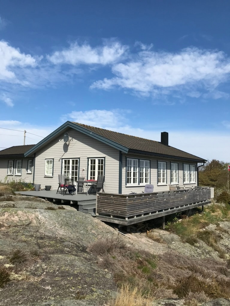 Velkommen til våre romslige familiehytte som ligger høyt med vid utsikt mot havet. Beliggenheten er privat og likevel nær flere strender. På terrassen mot havet kan dere nyte kvelden helt til solnedgang og den andre terrassen mot hagen er perfekt for frokost og aktiviteter. Hytta rommer opp til 9 gjester i alle aldre. I hagen er det god plass til badminton eller andre aktiviteter samt lekestue for de minste. Den lokale stranden byr på svaberg, sandstrand og krabbefiske. Hytta har parkering.