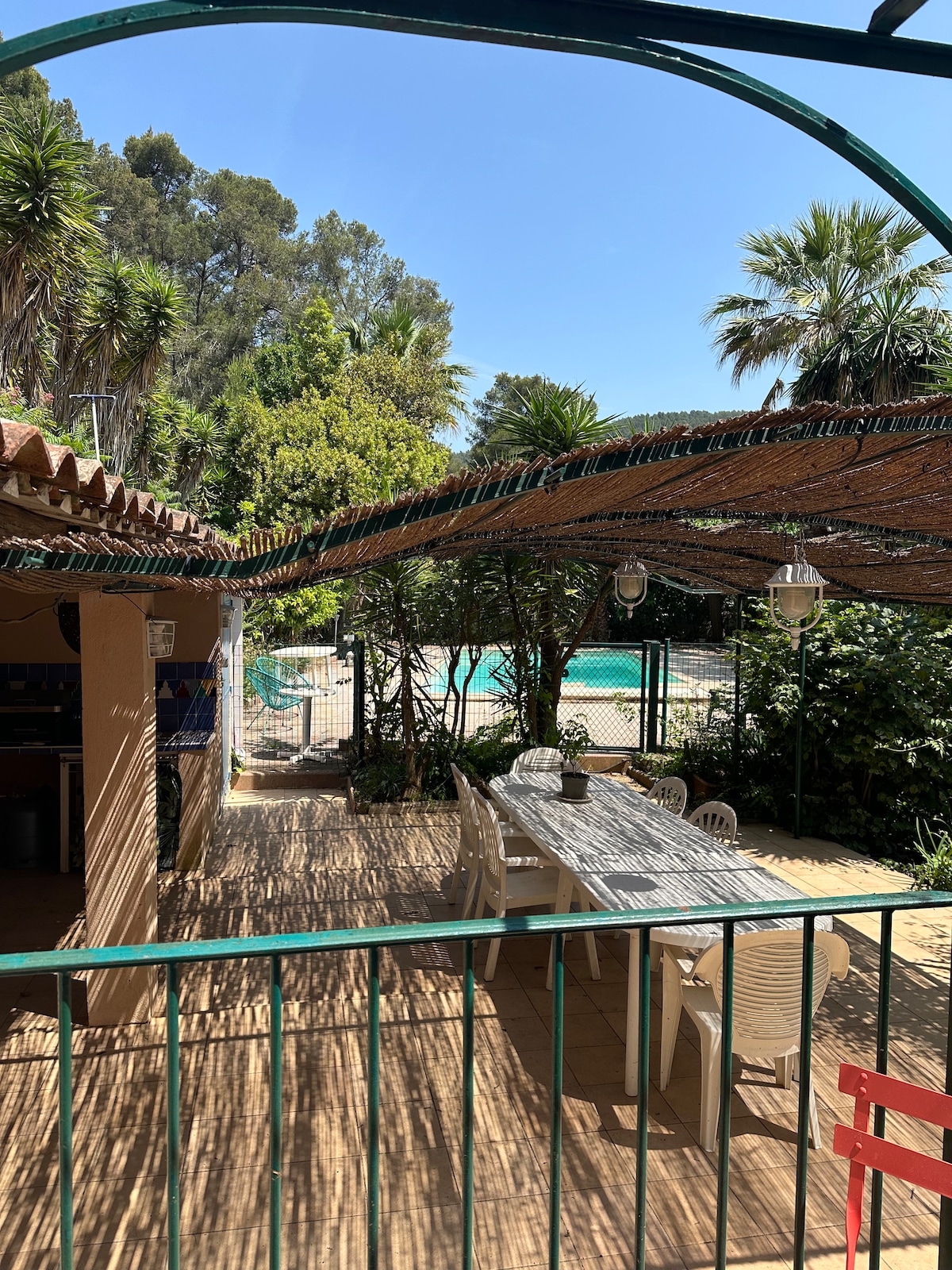 Logement très spacieux de 220 m2 dans ma villa sur les hauteurs de Hyeres dans un quartier résidentiel . Accès exclusif au jardin arboré et fleuri ainsi qu’à la piscine Vue exceptionnelle sur les îles et la ville de Hyeres Une agréable pergola vous permettra de prendre vos repas à l ombre et si il fait un peu plus frais , vous pourrez vous installer sous une spacieuse véranda. Le stationnement est facile dans la rue à proximité de la maison.
