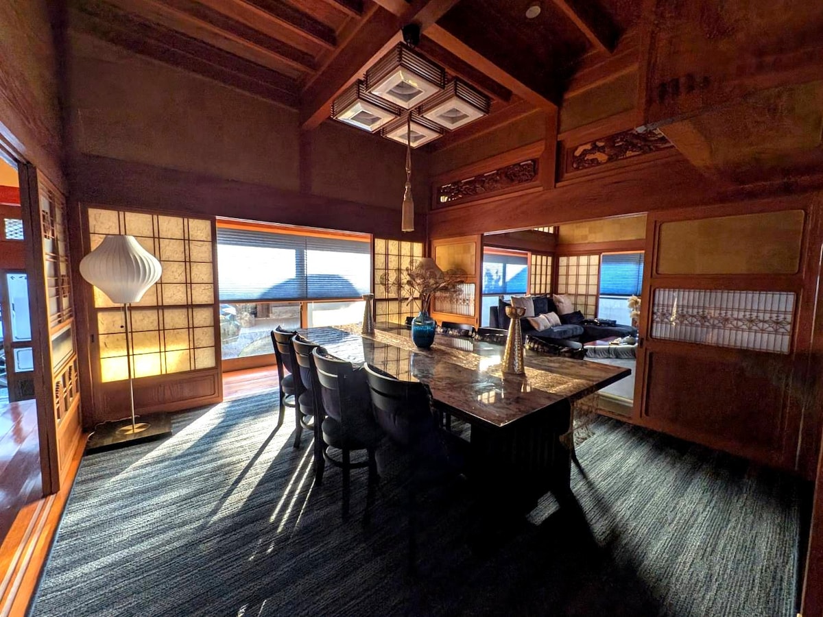 独特照明的日式现代住宅/3300平方米杂木花园/可租用付费烧烤用具/Simmons床/
