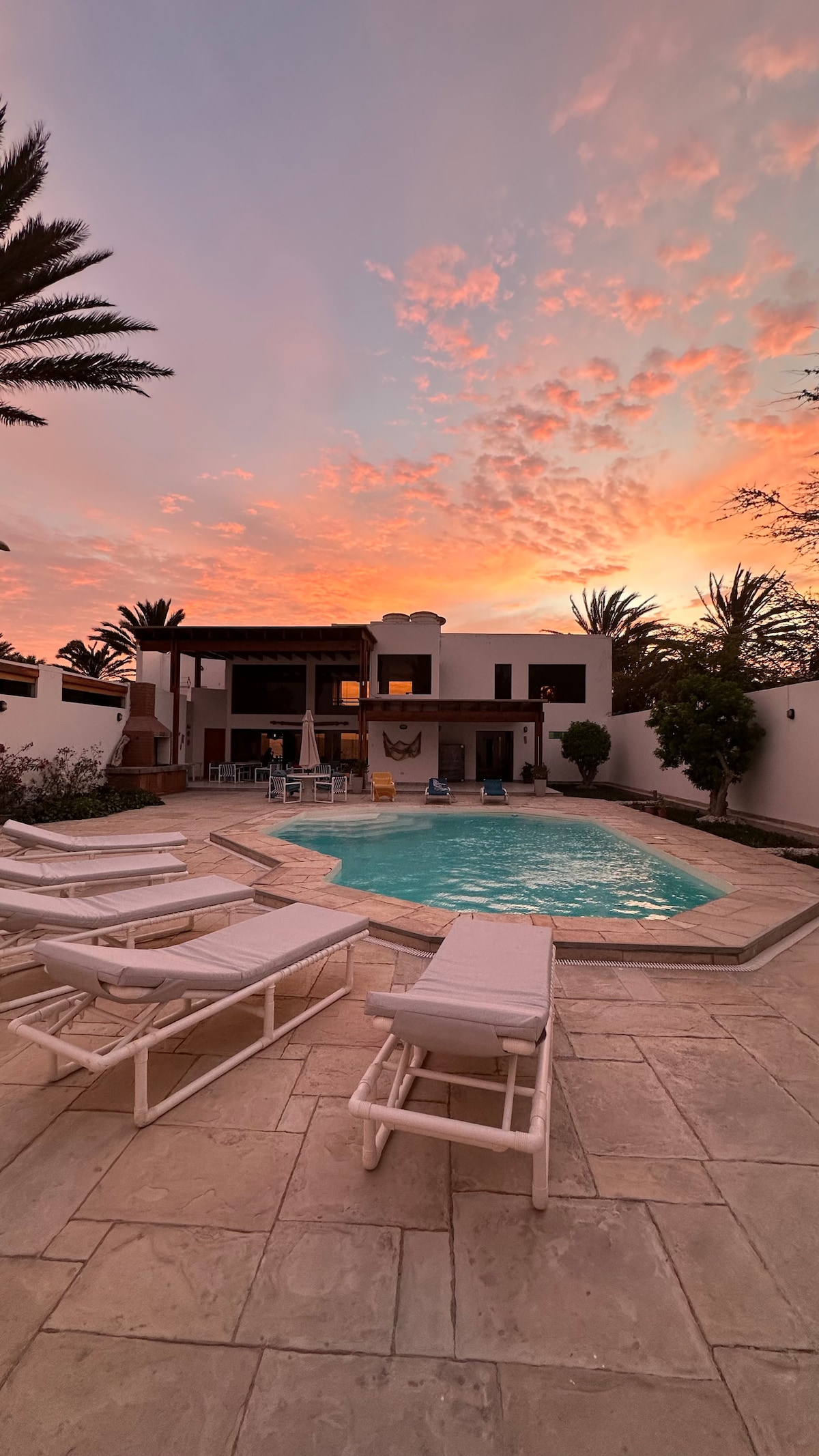 Modern and bright, luxury house, with beachfront pool, just steps away from the ocean. Housekeeper and private Chef included! Located in one of the most beautiful natural reserves in South America (Paracas) - a beach oasis in the middle of the desert, surrounded by a national parks and centuries of pre-Inca history, and 1 hour away from the Nazca lines! 3 spacious bedrooms with en-suite bathroom and closet, TV room, modern kitchen, laundry room, and a bedroom for service staff, a true gem!