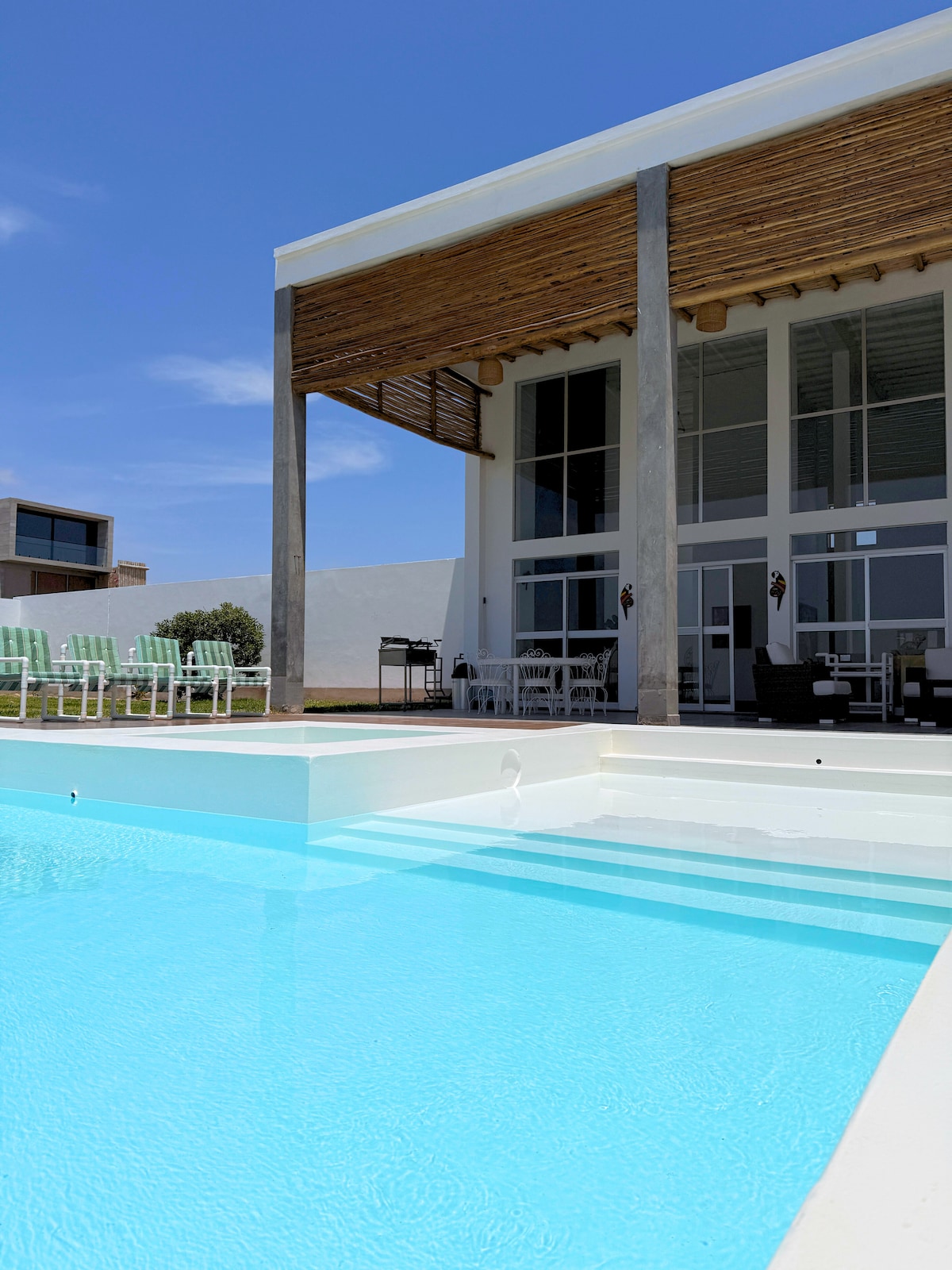 Casa totalmente amoblada y equipada, ubicada a solo 6 minutos en auto de El Chaco, cerca de la estación de buses y del embarcadero para las Islas Ballestas. Se encuentra en una zona natural sin construcciones, ideal para disfrutar de tranquilidad y privacidad, con acceso directo a una playa privada de arena y piedras. Paracas goza de sol casi todo el año, perfecto para descansar y relajarse después de los tours.