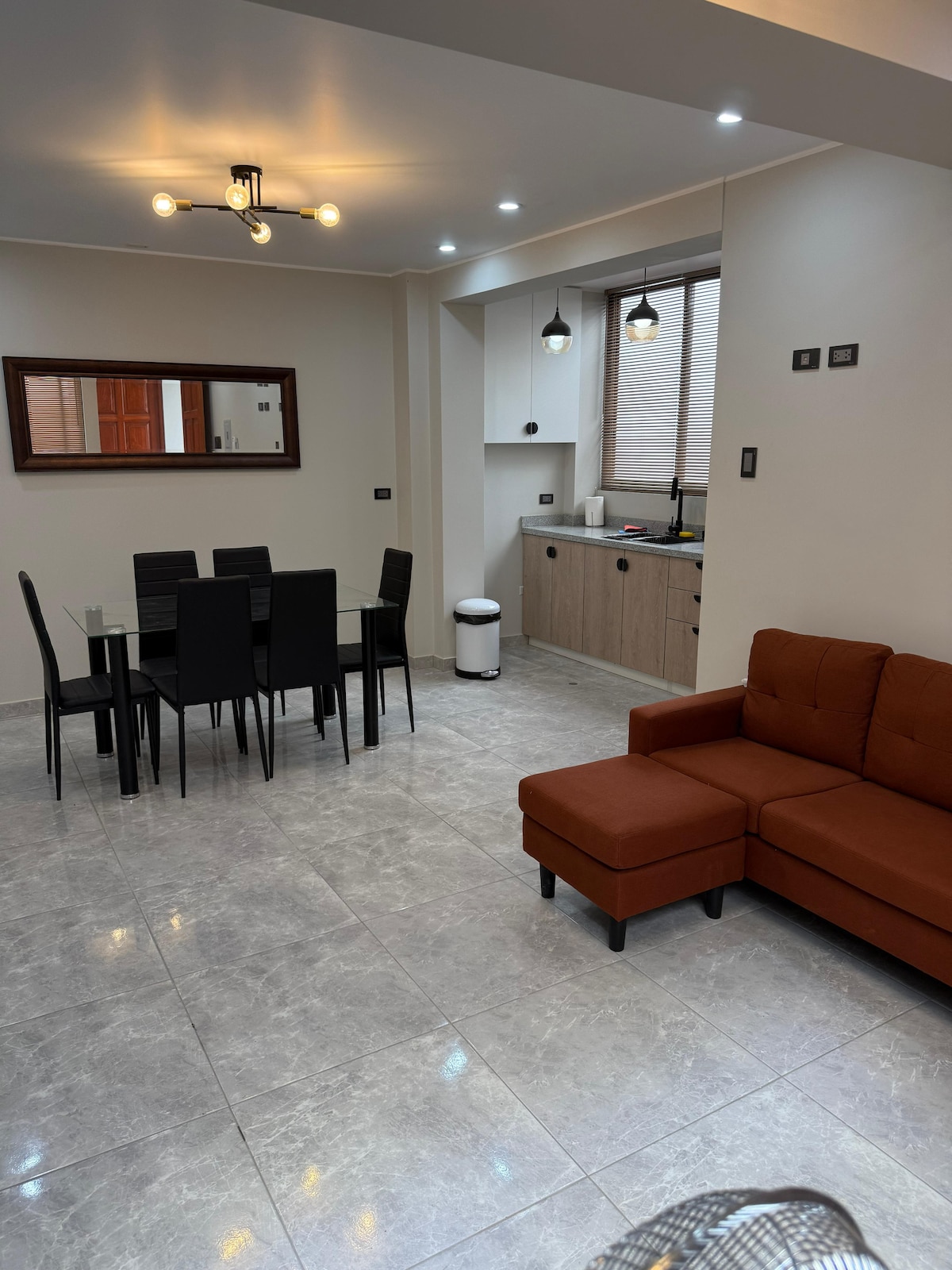 Lindo y cómodo departamento ubicado en una zona residencial con pórtico de ingreso, vigilancia 24/7 y cámaras de seguridad en toda la zona. Ubicado a 5 minutos de Huacachina (principal atractivo turístico de la ciudad). El departamento está ubicado en el tercer piso con entrada independiente del resto de la casa.