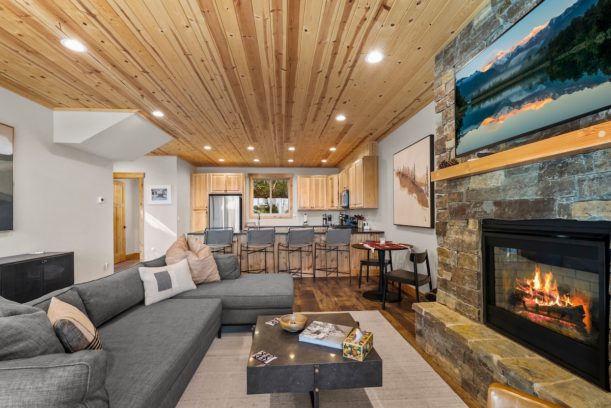 Kick back and relax in this calm, modern and stylish space. The home features a dramatic floor to ceiling fireplace for those chilly mountain evenings. You will enjoy the amazing view of the Teton Mountain Range out the 2 sliding glass doors. The living room has 2 cozy recliners and a sofa sleeper for relaxing and watching tv. Beautiful open concept Kitchen and eat in Dinning room for cooking in. The main and second bedroom feature queen bed and the living room has a sofa sleeper.