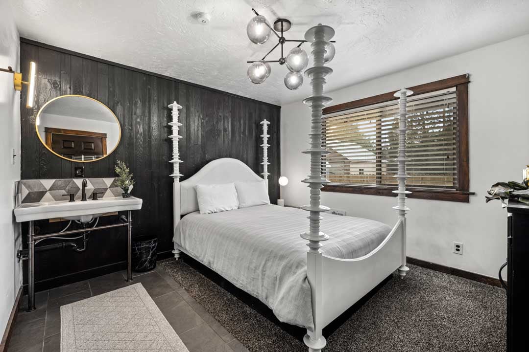 Freshly remodeled (2022) mustang themed room at Lake Village Lodge. Convenient location, near downtown festivities and close to the freeway entrance for quick access to all the mountain, skiing, lake, river, and hiking CDA and the surrounding areas have to offer! This room has a queen bed and futon, So this can comfortably sleep 4. Great home base for all your Coeur d'Alene adventures. If you need more space, check out our suites and room 6 & 7 at Lake Village Lodge.