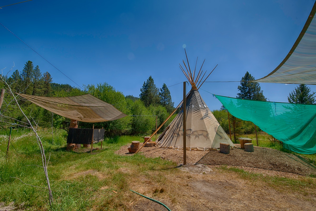 This private and secluded teepee is located on 16 private acres along the Middle Fork of the Payette River in Garden Valley, Idaho just an hour and fifteen minutes from Boise. Our teepees are approximately 225 sq. ft. and can accommodate up to 6 people comfortably. There are a maximum of 10 Teepees on the premises. There three chemical toilets conveniently located throughout the campground. Each teepee site has its own solar shower, mounted cold water shower and a mirror. You are required to bring your own camping gear; cookware, eating utensils, sleeping bags, etc... Each teepee site is outfitted with firepit, grill grate, picnic bench, log benches, hammock, 2 burner propane camp stove, hibachi grill and wash basins for dishes. Guests sit and relax while enjoying the sounds of nature. In the evenings, glampers can relax around the fire pit while cooking up some s'mores, the perfect way to relax at the end of a full and busy day of hiking and exploring the surrounding area. This secluded teepee provides basic amenities for those who want a minimalistic weekend in nature. Bring your own camping gear and sleeping accommodations. There is no electricity, but solar lighting and oil lamps provide all the ambient glow that guests need. Wi-Fi is available at the host's residence, but due to the secluded nature of the rental, it is limited. Accommodations Include: - 2 Burner Propane Camp Stove - Picnic Table - Firepit - Grill Grate - Hibachi Grill - Log Benches - Wash Basin - Hose Bib - Shower Head - Solar Camp Shower - Mirror - Dish Soap & Scrubber - Hammock - Hot Dog Skewers - Fire Extinguisher - Tiki Torch - Solar Lights Parking: In order to maintain an experience in nature, we do not allow parking next to your Teepee. Each Teepee campsite has an assigned parking space in the designated parking area. No vehicles are allowed past the designated parking lot. Guests are required to walk to their teepee campsite. There are handcarts available to transport your belongings to and from your Teepee campsite. If you need any assistance, please contact the onsite facility host. Distance to Teepee: Please look for Teepees by the River online to see the approximate distance from the designated parking area to each Teepee campsite under the accommodations tab.