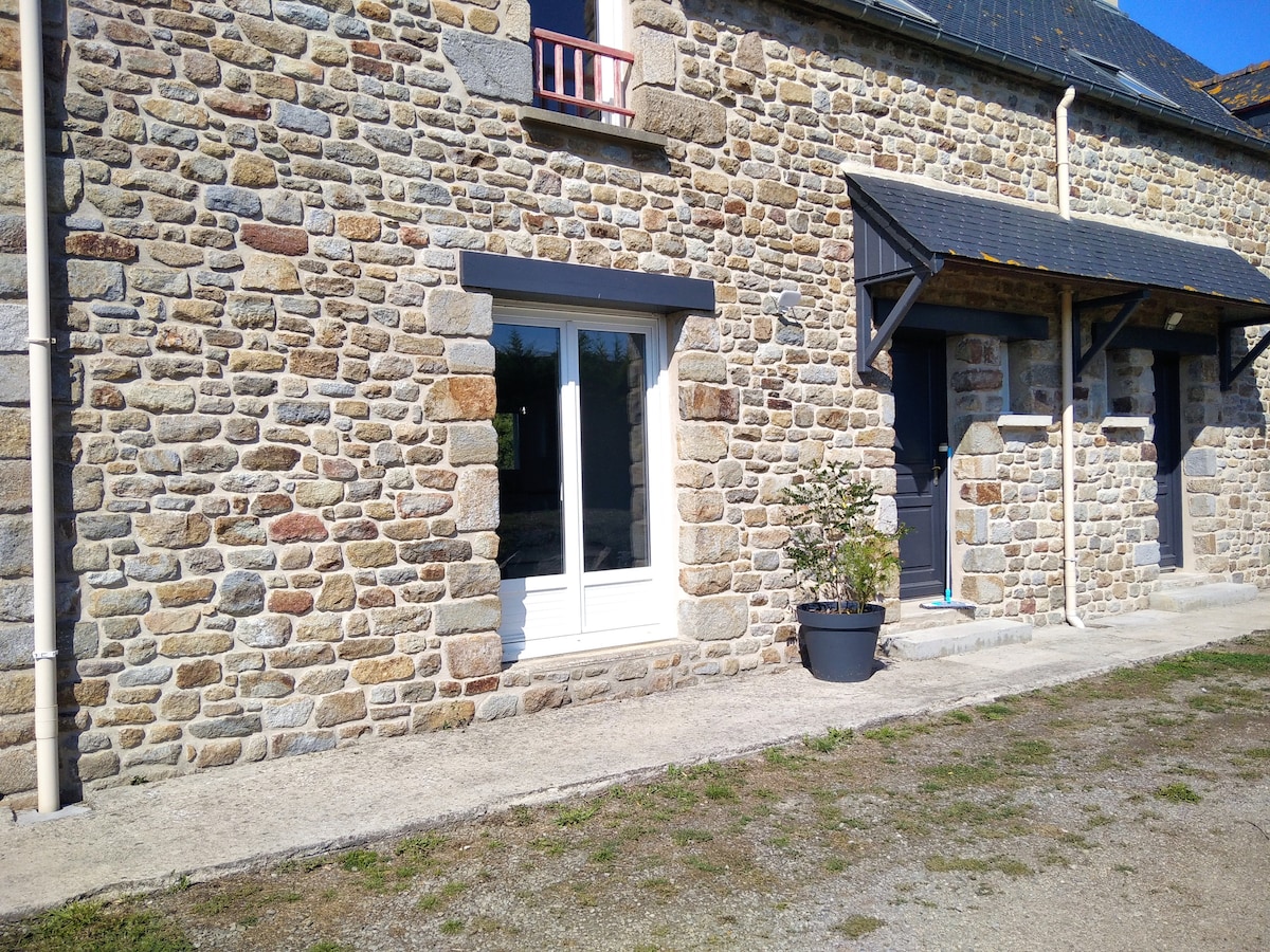 Gîte classé *** à 5 min à pied de la mer. Maison mitoyenne en pierre de 70m² entièrement rénovée, pour 4 personnes dans un hameau calme de Cancale. Rdc: salon, cuisine aménagée et équipée(frigo,four combiné,plaque induction,cafetière à filtre,lave-vaisselle),lave-linge, TV, Wifi. Wc+lave-mains. Etg:Wc, 1 chambre vue mer , 1 chambre vue sur la nature et les chevaux, chacune avec sa salle de bain privative. Parking privé, Jardin avec une terrasse au sud de 24m² et une terrasse vue mer de 18m²