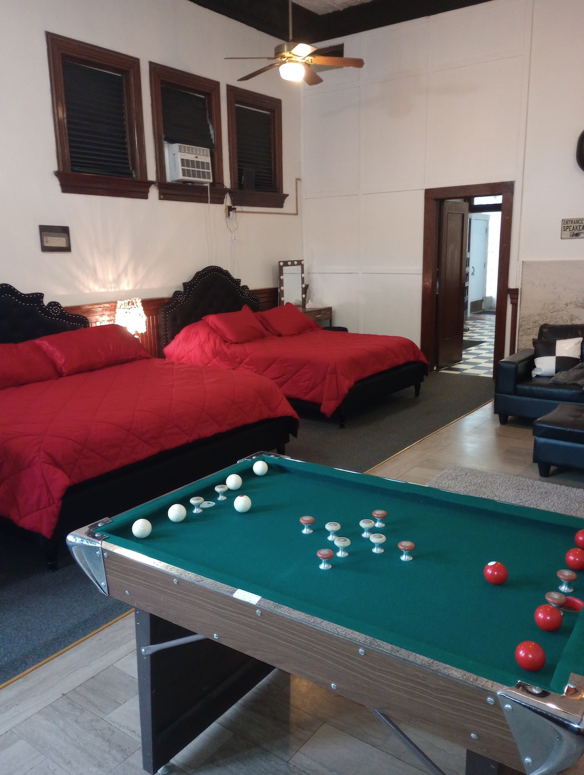 This historic bank, built in the 19th century has been vacant for many years, but we've restored it to its former glory. complete with the original walk in bank Vault . The Vault has a king and queen size bed, plus a rollaway bed with a memory foam mattress. We have another Airbnb, called The Citadel located upstairs. If you have a large family, you can book both places. Minors must be accompanied by an adult at both locations.