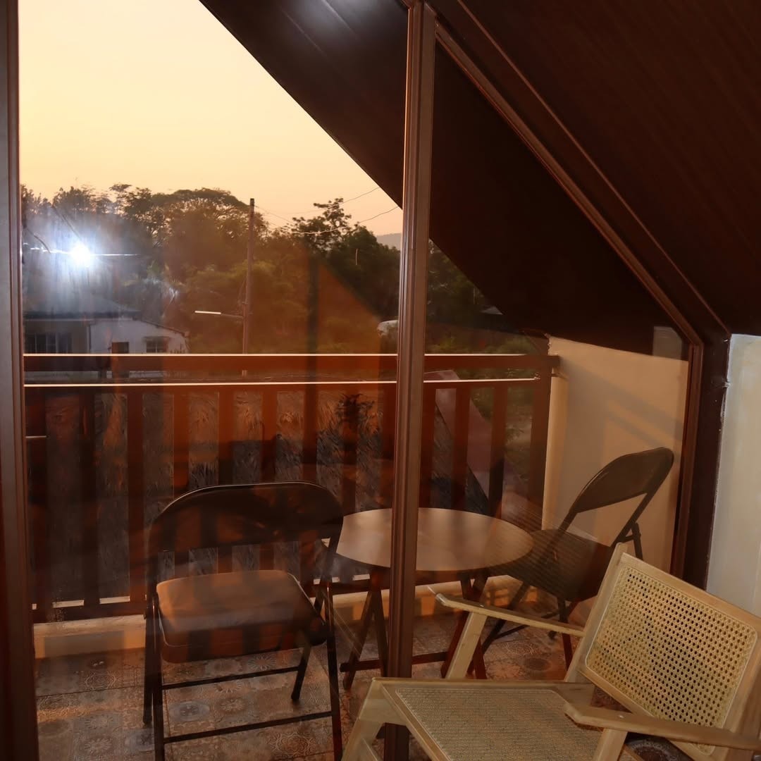 Amlangan Lodge room 10 is a private cozy room with 2 "double size" beds. It is located 2 floor levels down from the building entrance/lobby, dining with stairs to take. It has private toilet (with bidet) , sink, & bathroom (with hot shower) separate from each other, enabling guests to use these simultaneously & keeping the toilet floor clean, dry, & more comfortable. It has a balcony with a stunning view of pine forest & rock formations, which can also be viewed from your bed.