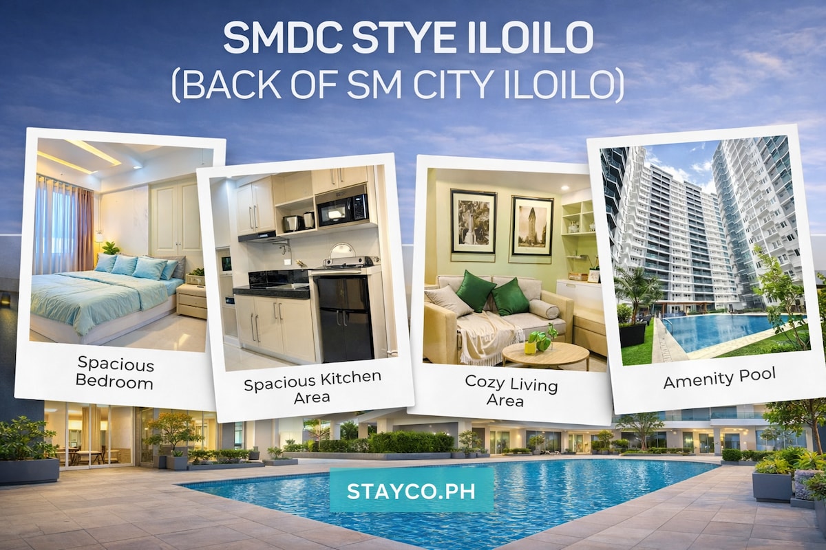 Welcome to our cozy studio unit with balcony located in Iloilo City. Space is perfect for guests looking for a comfortable stay whether for work or leisure.The unit have a comfortable bed, sofa bed, fast Wi-Fi, and a Smart TV with Netflix to help you relax after a long day. A small kitchenette is available for light cooking.Guests also have access to the pool, gym, and 24/7 security. The location is accessible and close to malls, restaurants, and public transport. 📍 Bernwood Tower, Iloilo City