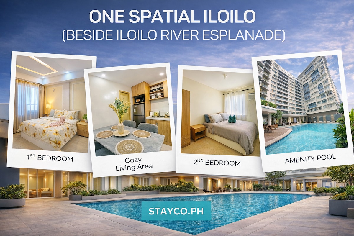 🏠 Relax in this newly renovated 32 sqm unit overlooking the Iloilo River, with easy access to the Esplanade. 🏠 Perfect for families or barkadas, it features two bedrooms, a comfortable living and dining area, a basic kitchen with essential appliances and utensils, and a bathroom with a heater and bidet. 🏠 Stay connected and entertained with fast WiFi and Disney+ 📍Directions: One Spatial Condominium Iloilo tower 2 R. Mapa Street., Mandurriao, Iloilo City