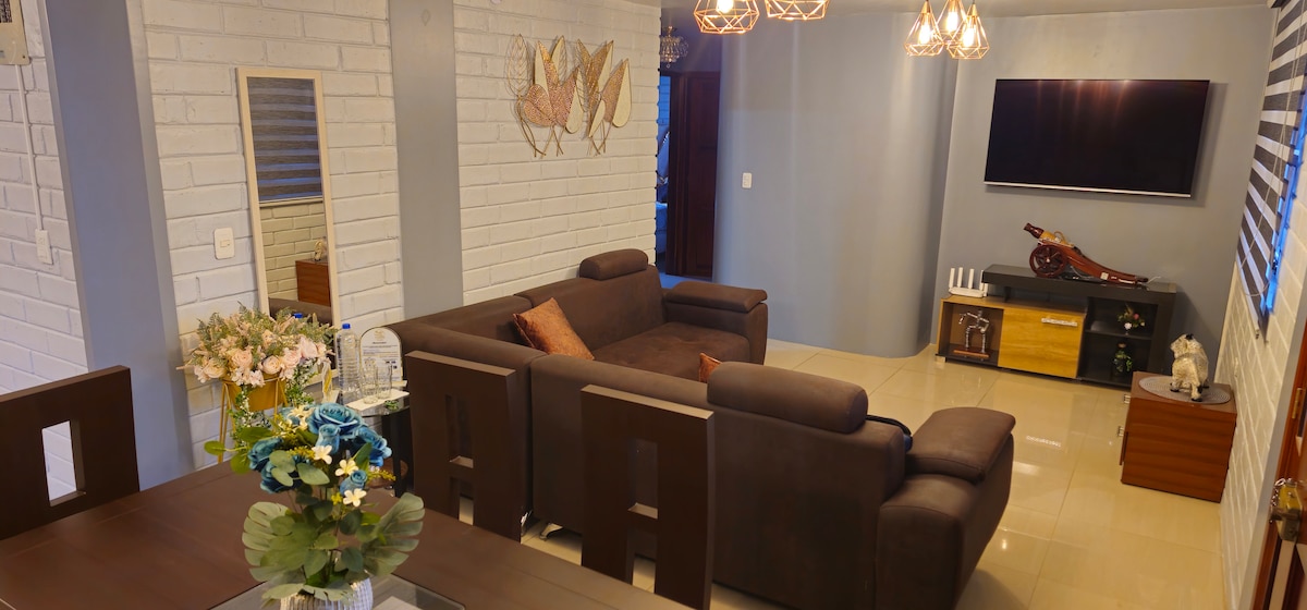 Disfruta de un departamento amplio y acogedor con cuatro dormitorios super espaciosos, pensado para que viajes en familia, con amigos o incluso para estancias largas. Ubicado en pleno centro de la ciudad, estarás cerca de todo lo que quieras descubrir: restaurantes, cafés, mercados y los principales atractivos de Ibarra. Si vienes a trabajar, tendrás internet rápido y confiable par hacerlo con total comodidad.