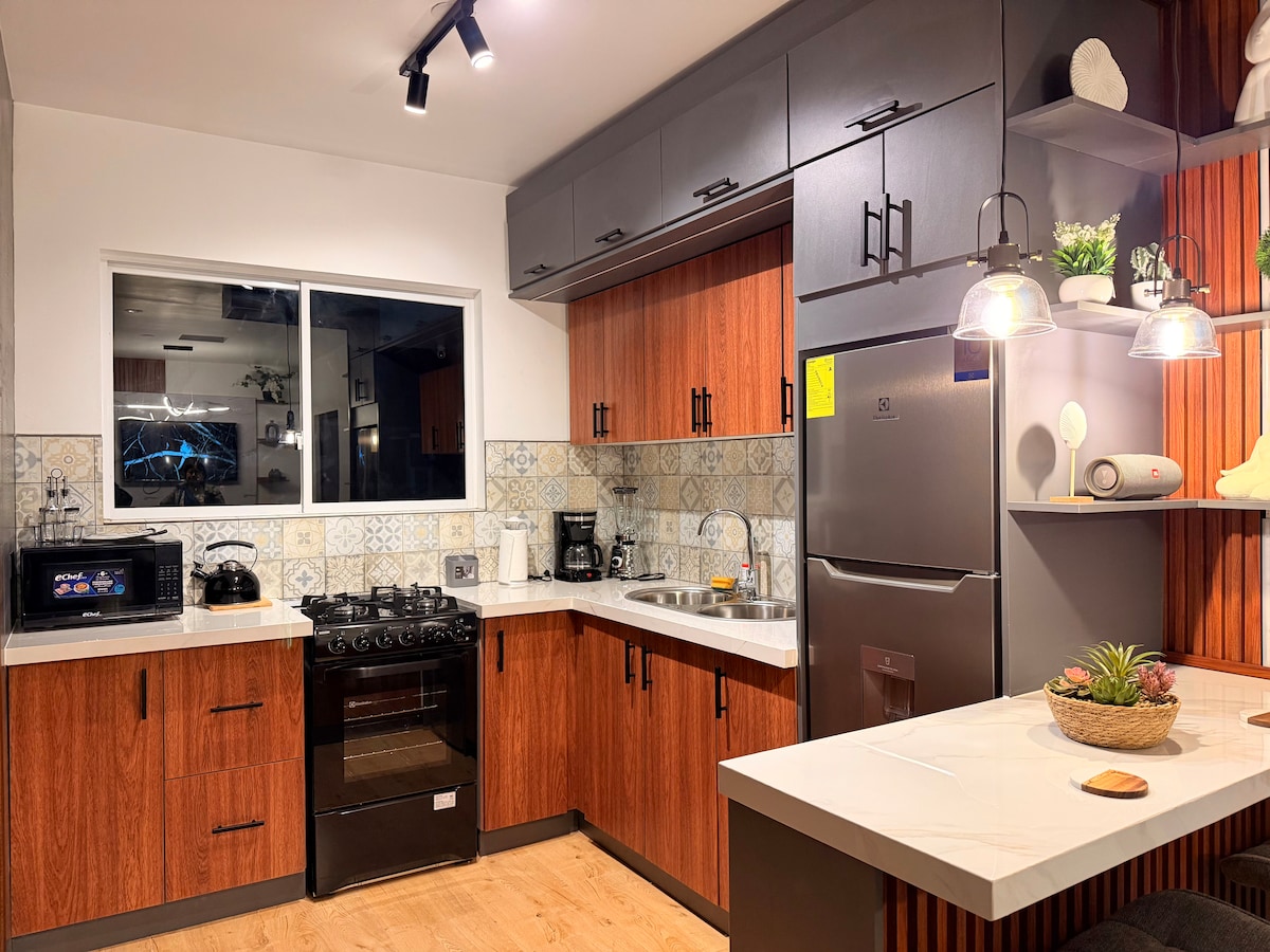 Bienvenido a tu oasis urbano! Este amplio y elegante departamento cuenta con 3 habitaciones, 2 baños completos y un baño social. Cada rincón está diseñado para tu confort, con una cocina equipada, sala y comedor acogedores. Disfruta de la tranquilidad de nuestros patios privados y la seguridad de un vecindario familiar. Estarás a solo 5 minutos del corazón de la ciudad, con la comodidad de un hogar seguro. ¡Reserva ahora y vive una experiencia inigualable!