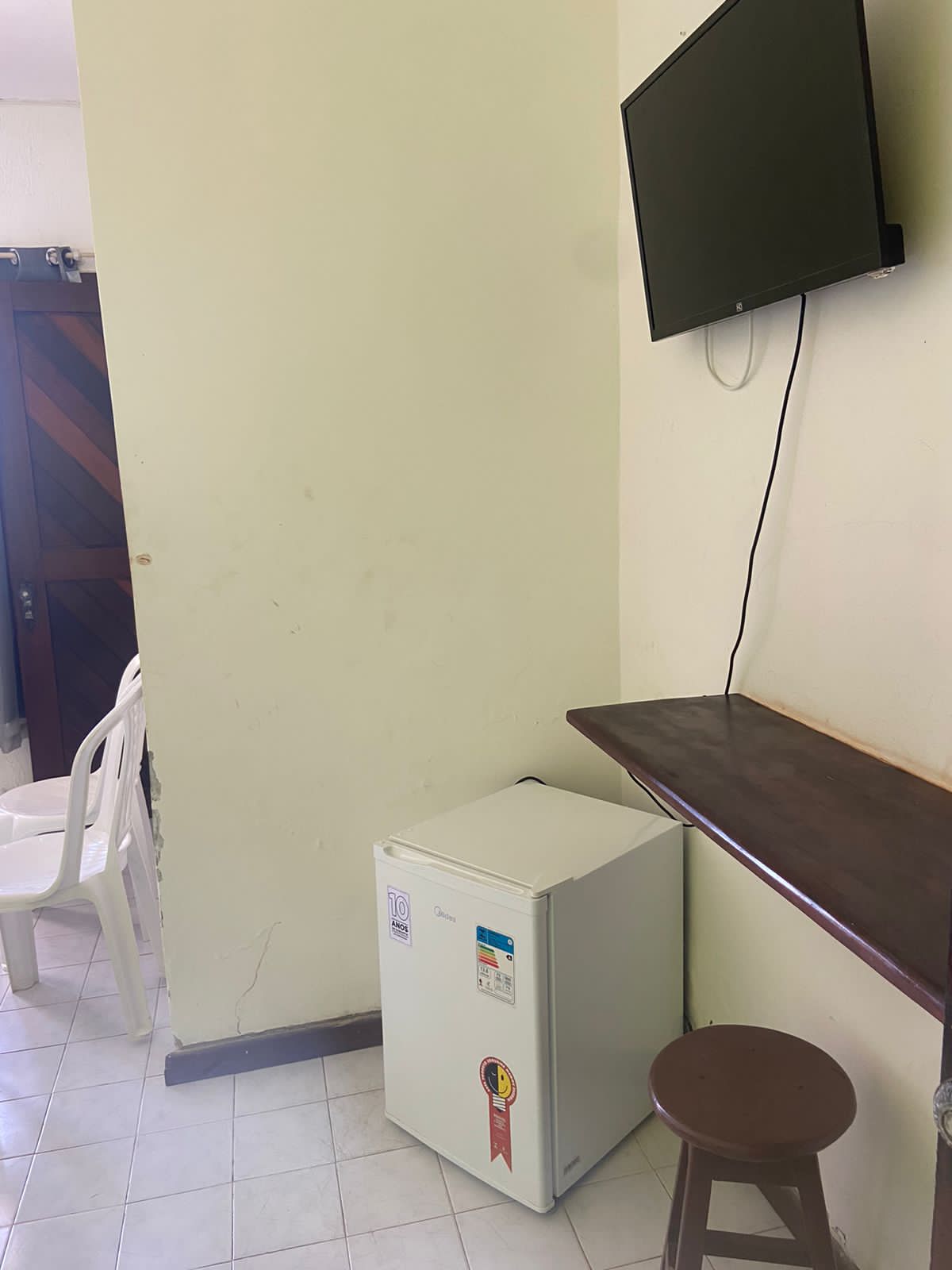 Suíte privativa com banheiro interno . Tv LED Smart , ar condicionado , Chuveiro aquecido , Frigobar, 1 cama casal 1 beliche Preço por ocupação. •Piscina Liberada •Jardim •Quiosque com Churrasqueira •Espaço gourmet microondas, geladeira, liquidificador, cafeteira, pratos talheres, e copos. •Refeitório •Pode trazer alimentos e bebidas .