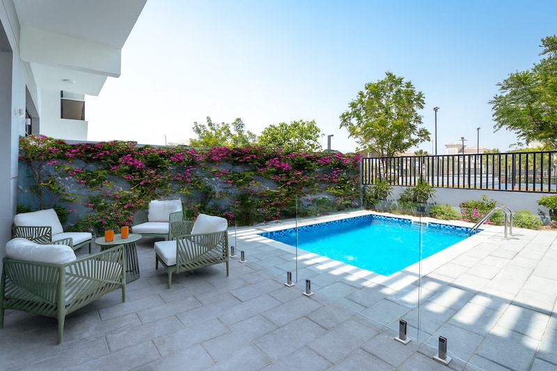 Welcome to your perfect resort-style escape. This beautifully located villa sits in front of the lazy river pool, offering a prime front-row view with effortless access. Set within a peaceful community, guests enjoy state-of-the-art facilities including a modern gym, beautifully landscaped surroundings and adventure-filled kids' play areas Whether you’re looking to unwind, spend quality time with family, or explore Dubai, this villa offers the perfect balance of comfort, nature, and convenience.