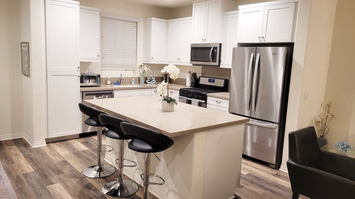 Relax in our fully equipped, beautifully furnished, 3 br, 3 ba home in the center of laid-back Imperial Beach. Savor a glass of wine while watching the sunset from the private balcony overlooking the pier and ocean. Prepare a gourmet meal in the upscale, contemporary kitchen or walk to lively craft breweries and great restaurants. Easy access to downtown, just 20 minutes from the airport! Keypad entry, free private parking in gated garage, child friendly, hi speed WiFi.