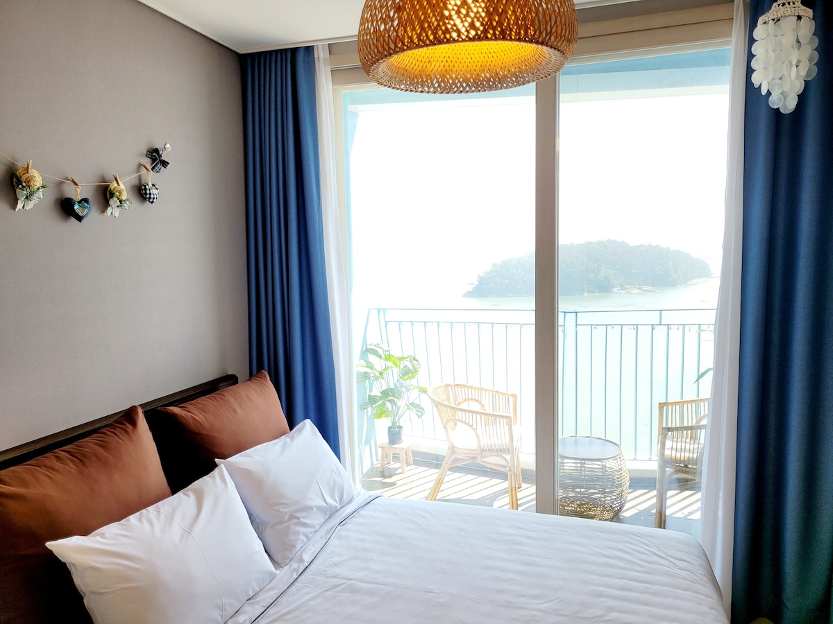 하늘과바다를 보며 쉼을 느껴보세요 :)포근한 침구가 매력적인 곳. 무료주차,넷플완비