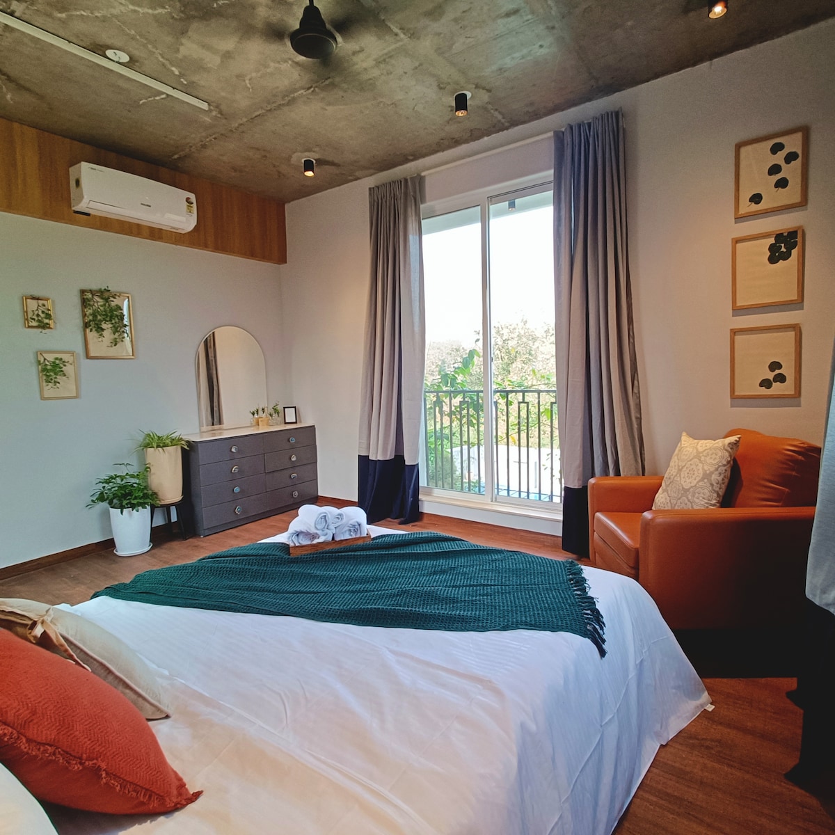 This charming 1BR features a Jacuzzi, a beautiful terrace & lush plants. It's a cozy, intimate space-not a large, expansive setting,with intentionally rustic decor. Please read ALL details before booking, including the "Other details to note" section & check our unbiased guest reviews! Photos with candles, flowers, and fairy lights showcase our romantic setup, available for Rs. 2950. Hot water in the Jacuzzi is offered from December to February.