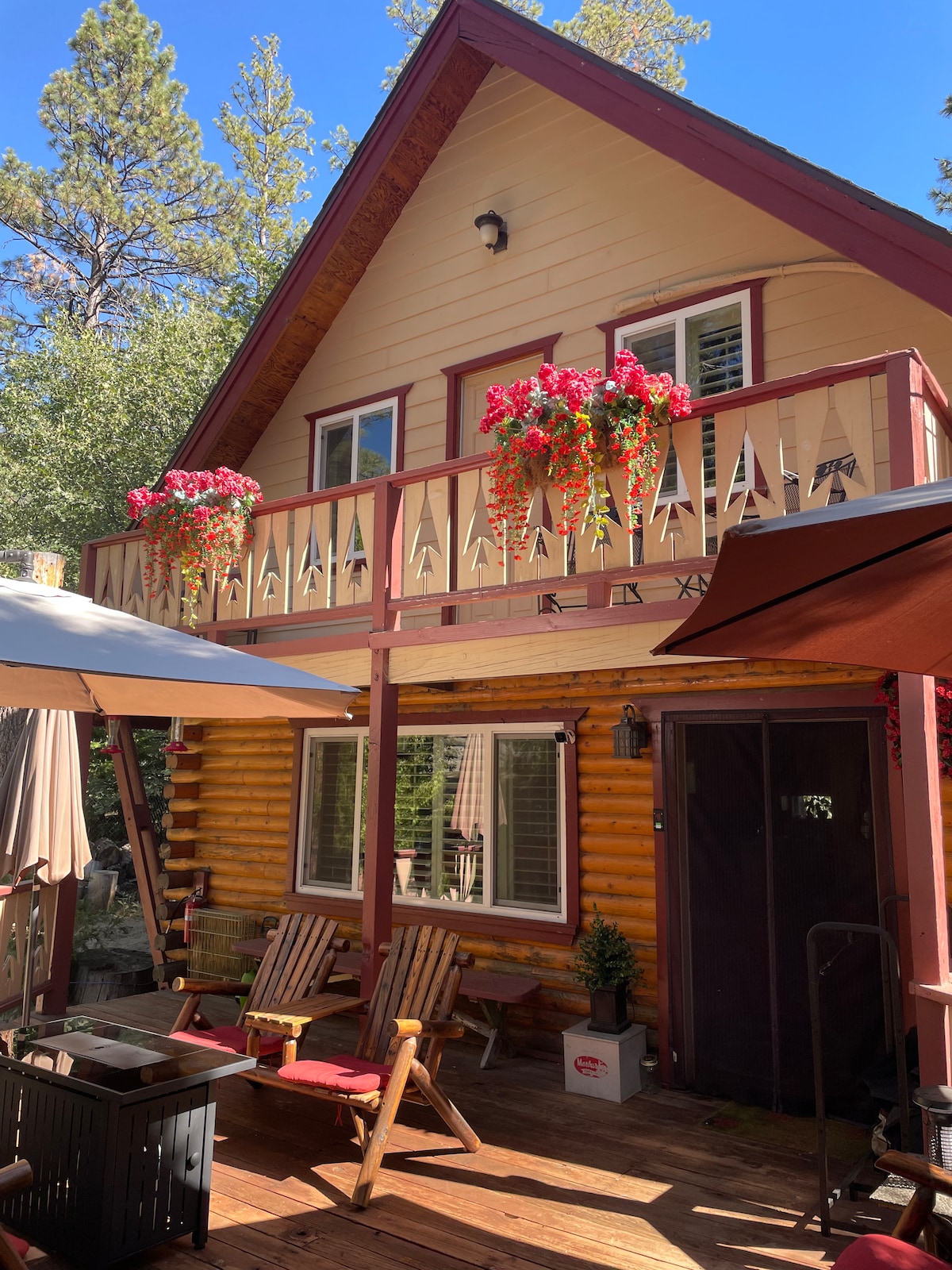The Far Out is a newly renovated A-frame cabin nestled in the beautiful woods of Idyllwild in the San Jacinto Mountains. This mountain retreat sits on an acre of land complete a 1200 sq ft wooden deck and hot tub. The sounds of Strawberry Creek can be heard in the background. Set far back from the road, the cabin and the grounds offer a magnificent private space for romantic getaways, family R&R, self reflection and artistic inspiration. Beauty abounds at the The Far Out!