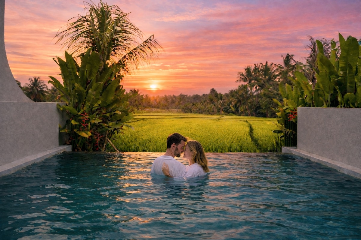 Hidden between rice fields and tropical jungle, Oniria is a romantic luxury villa designed for couples seeking beauty, connection and calm. Enjoy a private heated infinity pool overlooking the valley, a sky bathtub under the stars, and a private home cinema that turns every night into a movie scene. Every detail blends nature, design and emotion, creating one of Bali’s most unique stays for honeymooners and dreamers. This is where time slows down, and connection begins 🌿✨