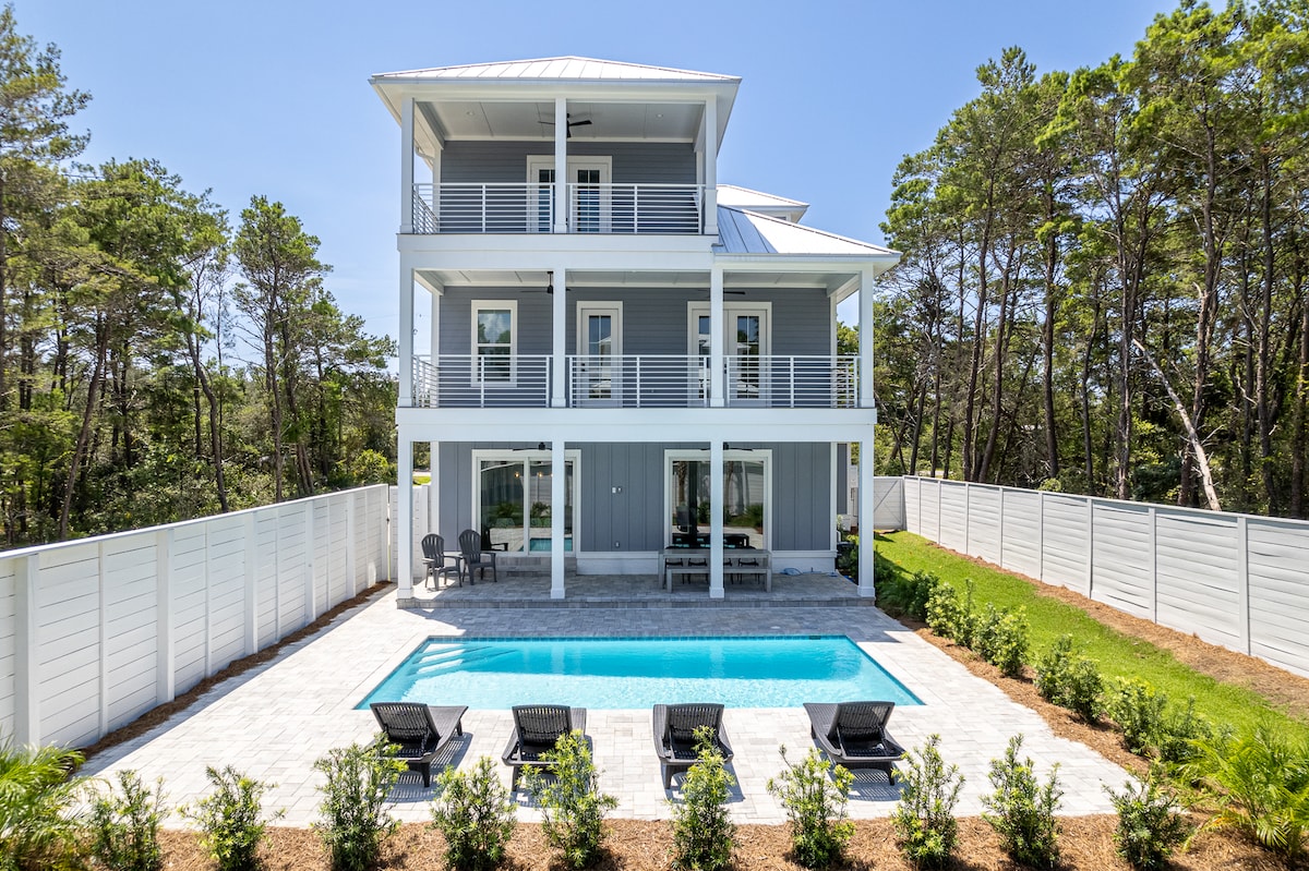 A NEWLY BUILT LUXURY COTTAGE DESIGN BEACH HOUSE WITH PRIVATE/HEATED POOL* AND GOLF CART in the heart of Santa Rosa Beach off 30A. This beach house is nestled among the trees yet only minutes away from the white sandy beaches. Bask in the sun by day and wind down and relax in the outdoor areas surrounded by a peaceful wooded area by night. It is like stepping out of one world directly into another. Come and Relax and enjoy the peace and tranquility of this cozy retreat.