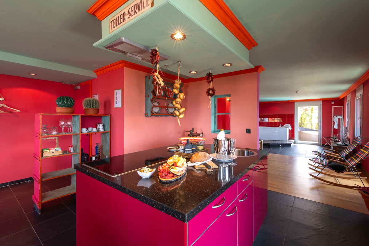 Ferientage entspannt in einer schönen und gepflegten gut ausgestateten Ferienwohnung verbringen. Highlights: Whirlpool, Sauna und Outdoor Dusche an einer aussergewöhnlichen Lage stehen 24h nur für unsere lieben Gäste zur Verfügung. Ferienwohnung eignet sich für 2 Erwachsene und 1 Kind, Haustiere erlaubt. Eigener Parklplatz ein paar Meter vom Haus entfernt. Einstellraum für Velos, Kinderwagen Bad: Badewanne/Dusche, Waschmaschine Küche: Filterkaffeemaschine, Wasserkocher 1 Doppelbett, 1 Bedsofa