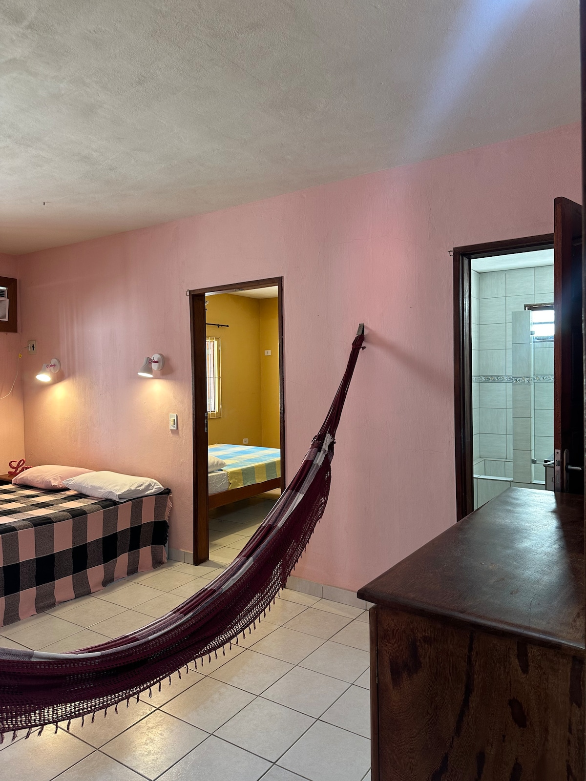 La Suite da Terra es nuestra habitación más íntima y completa, pensada para quienes buscan descanso y conexión. Cuenta con cama matrimonial, baño en suite, aire acondicionado y ventilador de techo. Su ambiente simple y natural invita a relajarse después de un día de playa. Forma parte de Espacio Mangará, a tan solo 250 metros de la playa, un espacio donde recibimos huéspedes como amigos. Fica na paz.