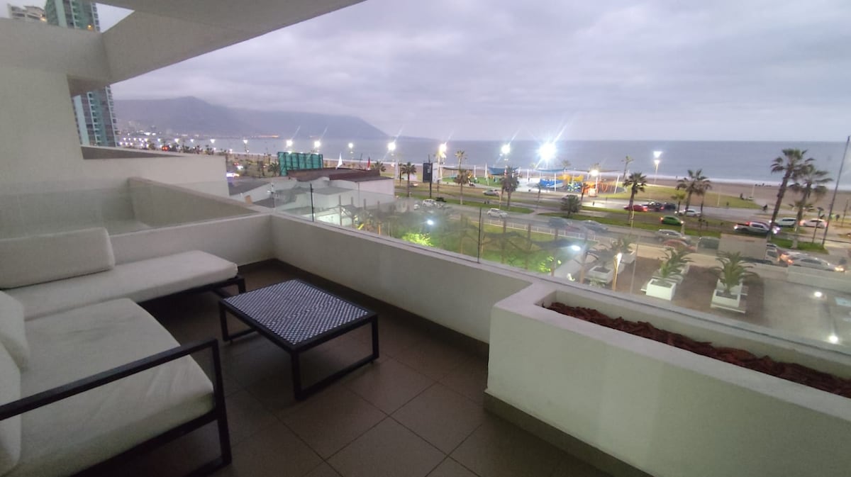 Disfruta de una increíble experiencia en nuestro departamento ubicado en el piso 23 en primera línea frente al mar, con vistas increíbles y cercano a puntos claves de la ciudad (Supermercados-centro comercial- bencineras-Restaurantes) El departamento se encuentra equipado y amoblado completamente para que tengas una experiencia más cómoda, para un máximo de 4 personas con cama matrimonial y sofá cama, una terraza que te permitirá disfrutar y compartir mientras ves un lindo atardecer.