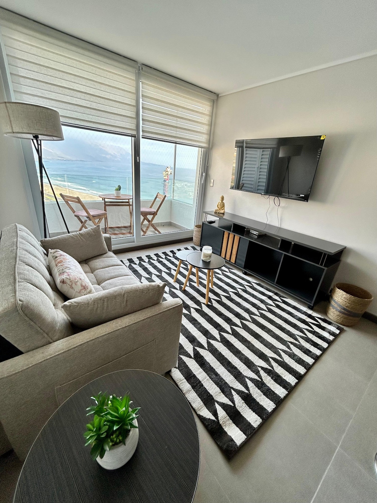 Departamento en la mejor ubicación de la ciudad y con una vista privilegiada hacia el océano pacífico, en primera línea frente al mar. Amoblado y decorado con estilo moderno y elegante, completamente equipado, equipos electrónicos, electrodomésticos, terraza de 20 m2, dos baños (uno en suite).