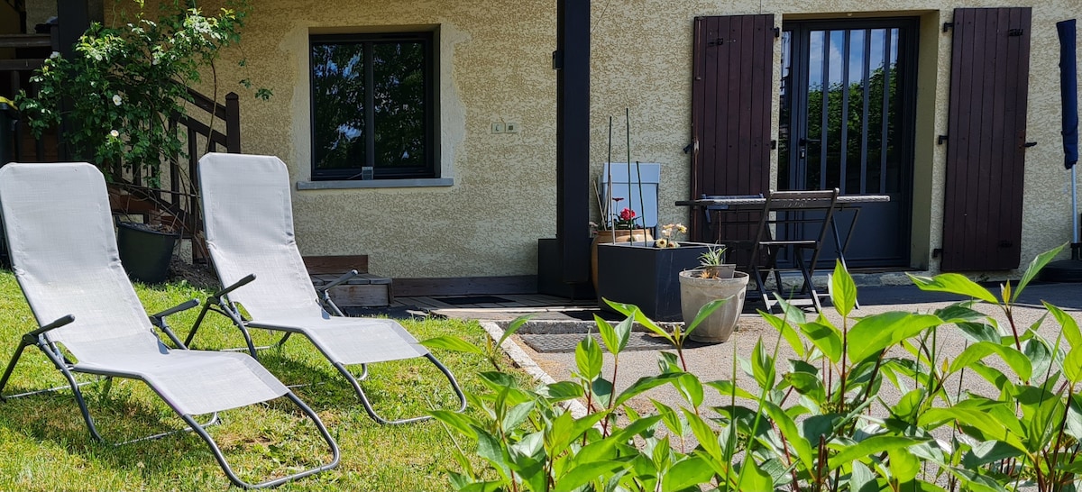 J'habite sur place et vous accueille dans un logement indépendant, classé meublé de tourisme 2* au rez-de-chaussée de ma maison. Vous disposerez d'une petite terrasse abritée en rez-de-jardin, d'une pièce de vie (couchage enfant possible) avec kitchenette (lave-linge/vaisselle)d'une chambre séparée avec lit en 160x200 et coin douche à l'italienne De nombreuses activités alentour : randonnées au départ du village, parapente, cyclisme, baignade et activités nautiques sur le lac d'Annecy à 5 km...