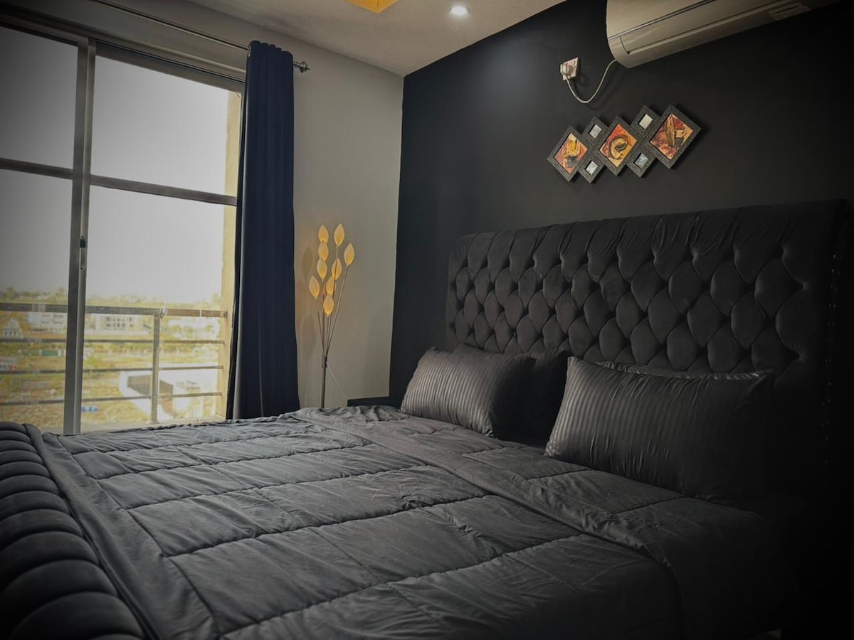 Located in the iconic Elysium Tower, this premium apartment offers upscale city living in the heart of Islamabad. Enjoy elegant interiors, modern furnishings, high-speed WiFi, secure access, and stunning skyline views. Steps away from top dining, shopping, and business hubs—perfect for executives, families, and travelers seeking luxury, comfort, and convenience in one prestigious address This listing offers ▪️Ultra High speed internet ▪️50 inch Brand New TCL Smart TV ▪️All Basic amenities