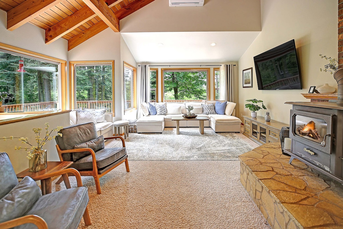 Reconnect with the nature at this beautiful home. From the moment you arrive on Whidbey Island, you and your crew are sure to fall in love with the scenery and abounding outdoor recreation. This gem is tucked away among Langley, access to Saratoga Beach, Goss lake and near by walk trails/parks. Enjoy access to the private community beach, park, boat launch, located 3min drive and about 10min walk. Come feel the good vibes here at this place. Enjoy the spacious home get away with outdoor hot tub!