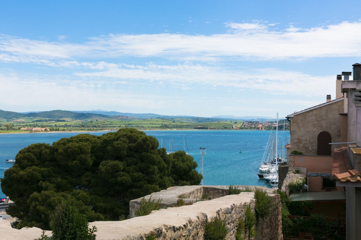 With one of the most extraordinary views in Tuscany, enjoyed even from your bedroom - you will not want to leave! Peacefully located in the most photographed street in the town, yet only 3 minutes walk from restaurants in the beautiful harbour, and 10 minutes to bathing spots, Far Horizons apartment is an recently renovated, colourful and comfortable apartment, with stunning sea views from every window and over the old port, orange gardens and the 15th Century Spanish Fort.