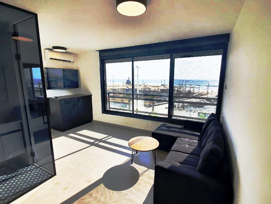 Experience luxurious beachfront living in this three-room suite in Herzliya Pituach, close to North Tel Aviv. This tastefully renovated apartment includes a spacious bedroom, cozy living room, and a fully equipped utility room. Located near Herzliya Marina with a guarded entrance, the building offers amenities like a pool, gym, sauna, tennis court, and covered parking. Enjoy top-tier beachfront luxury in a prime location.