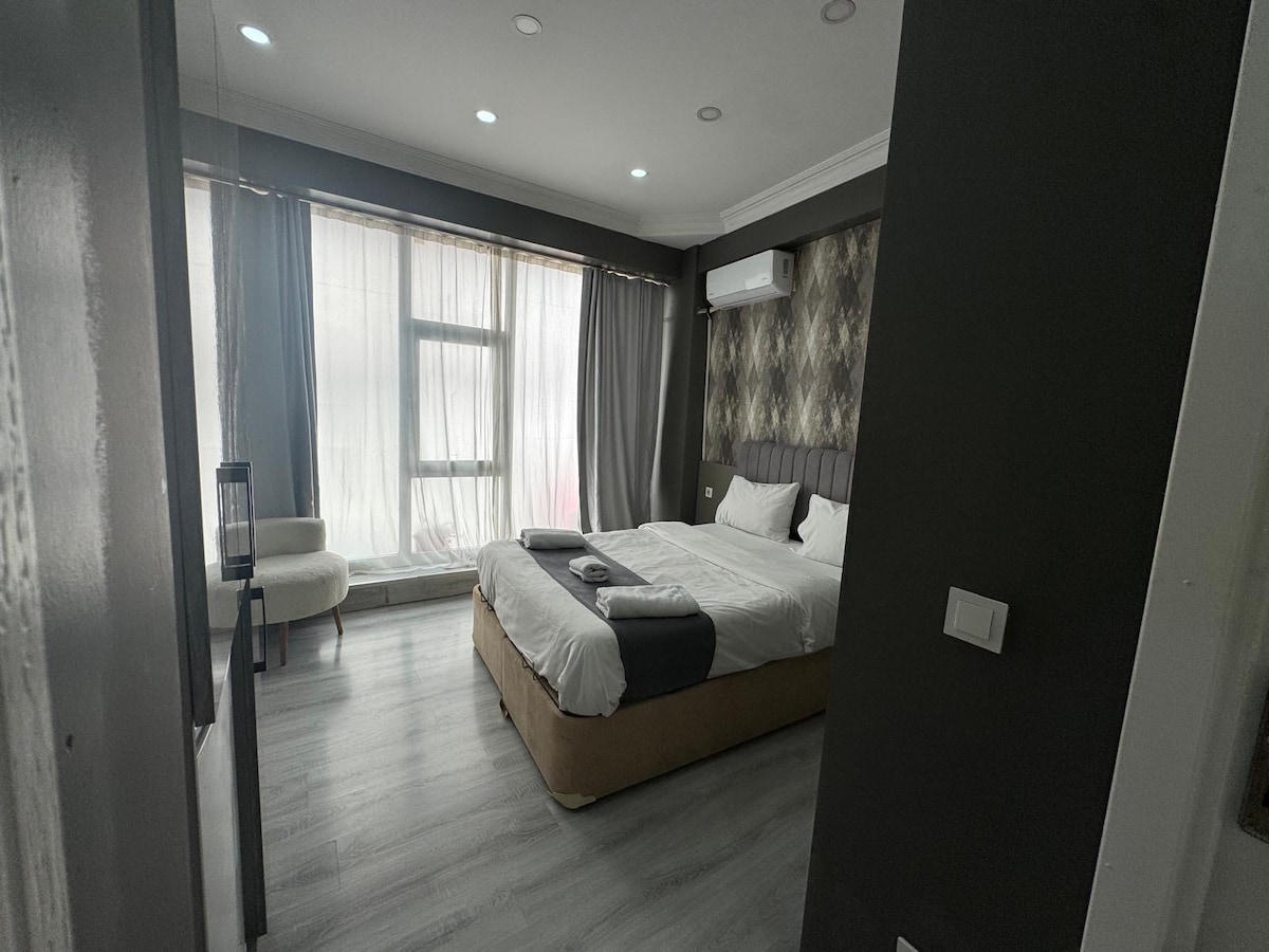 You will not be far from the comfort of your home during your stay in this large one-bedroom apartment with an additional seating area, an integrated kitchenette, and a spacious bathroom , which is located on the main street in the center of the famous Sisli area. In this apartment located in our hotel, we have a reception 7/24 , the entire hotel is monitored by a camera security system that operates 24 hours a day, 7 days a week. We also have a big elevator in the hotel.
