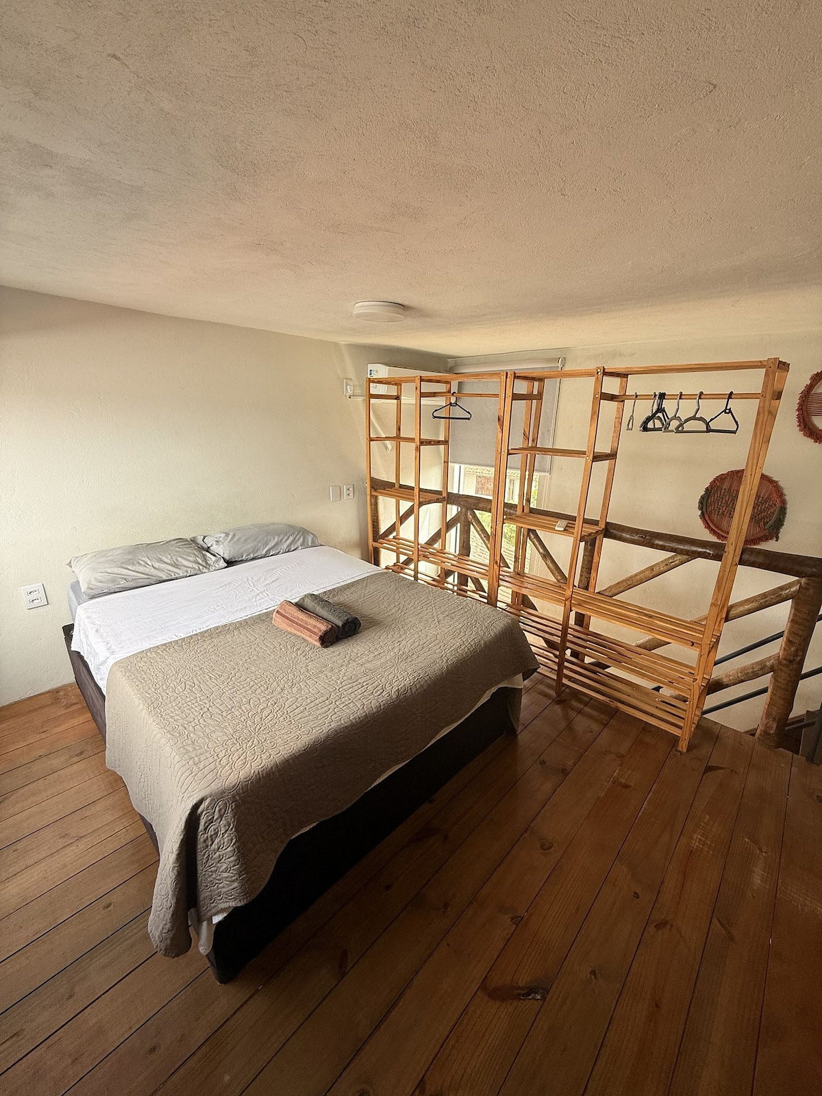 Espaço aconchegante e construído recentemente. Localiza-se a 550 metros da Orla e 500m da praça central de Itacaré, contando com 1 quartos, um banheiro + ducha externa, cozinha e vaga para carro. Utensílios básicos de cozinha, toalhas, travesseiros e lençóis são disponibilizados para os hóspedes. Muito verde ao redor