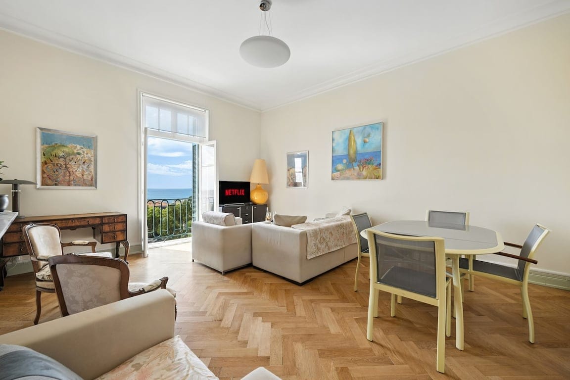 Vous séjournerez au PIACERE, superbe appartement de 85 m² avec vue mer, dans la Résidence l’Impérial, ancien hôtel de luxe classé monument historique. Ce joyau néo-classique du XVIIIe siècle, signé Hans-Georg Tersling, séduit par son parc exotique. Ancienne suite du palace du groupe Ritz, il allie charme du passé et pièces iconiques du XXe. À 100 m de la mer, 700 m du Casino, proche commerces et centre-ville.