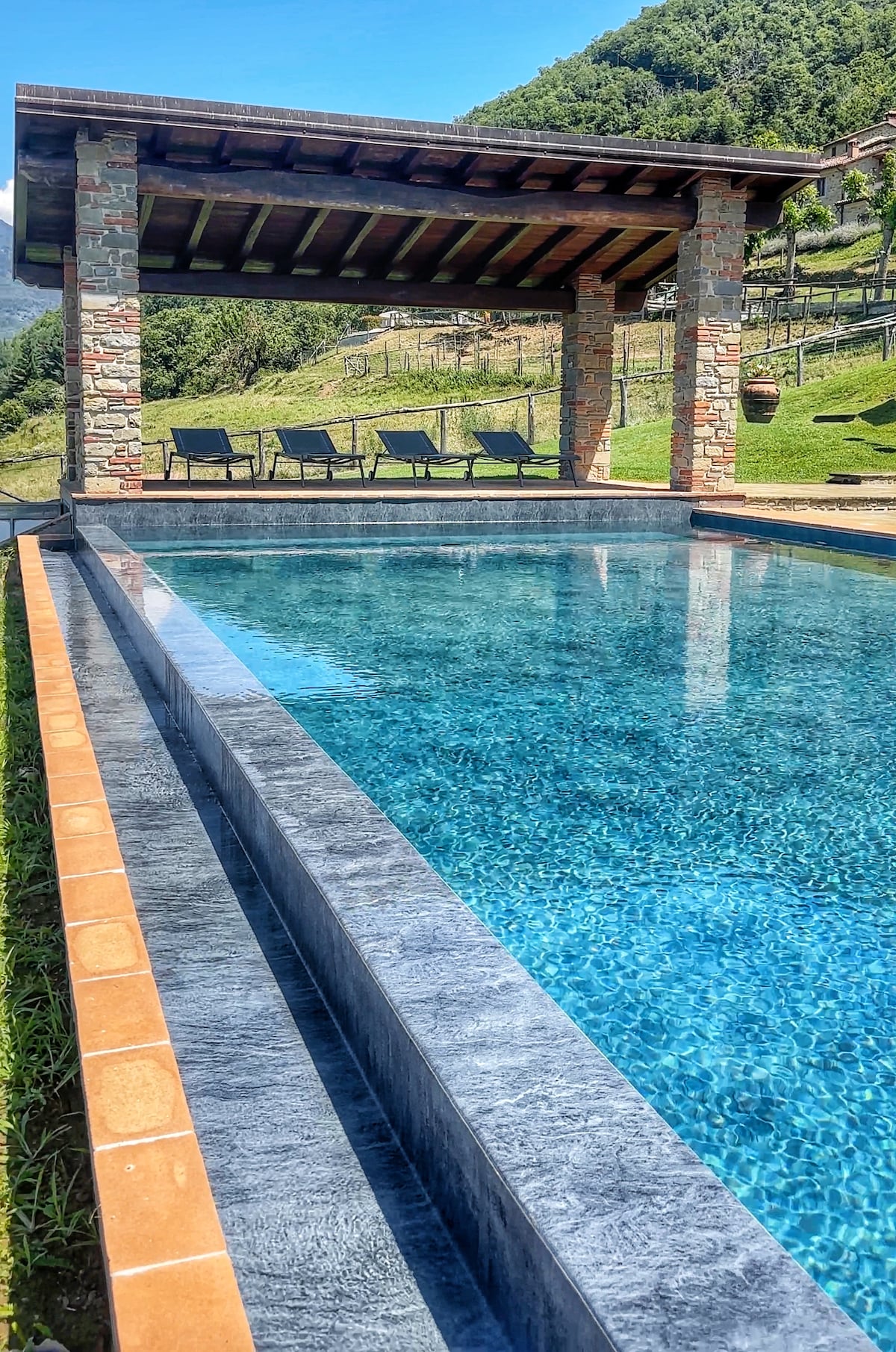 Located between the villages Viceno and Benano with incredible views of Orvieto and surrounded by olive trees. Casa Isla is a refurbished 70sqm 2 bedroom cottage next to the main house, completely self-contained with its own private garden and BBQ area. There is a double bedroom and a second with twin-beds, both with air-con. The lounge/kitchen comes with fridge, gas hob, oven, and dishwasher, a sofa bed, and a smart TV for movie nights. Relax in our salt-water/mineral pool.